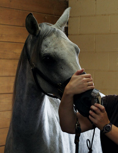 الحصان في هذه الصور الفوتغرافية يبلغ الخامسة من العمر ولم يحلق قبلا دون استعمال المسكنات. ألتقطت هذه الصور بعد مرور ثلاثة أيام على حلاقة هادئة. لقد بدأ يتقبل مقصات الحلاقة ولكنه ليس مستعدا بعد لإبداء الحماس المطلوب كما درب.