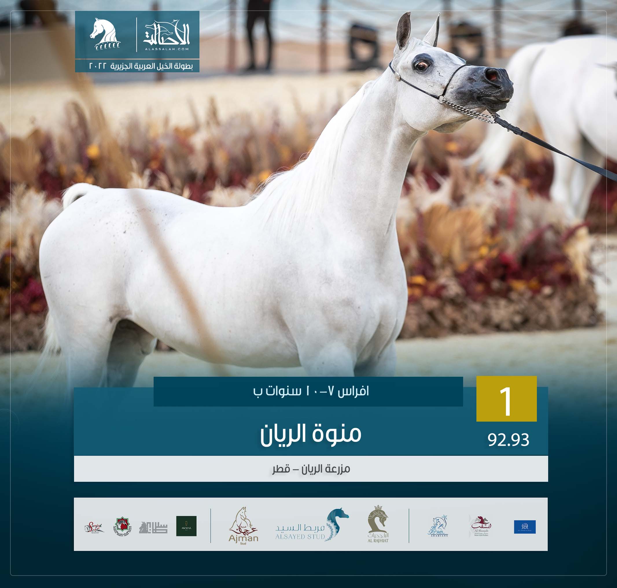 المركز الأول: منوة الريان (فارس الريان x بنت مسعودة ام اتش بي) مزرعة الريان- قطر.