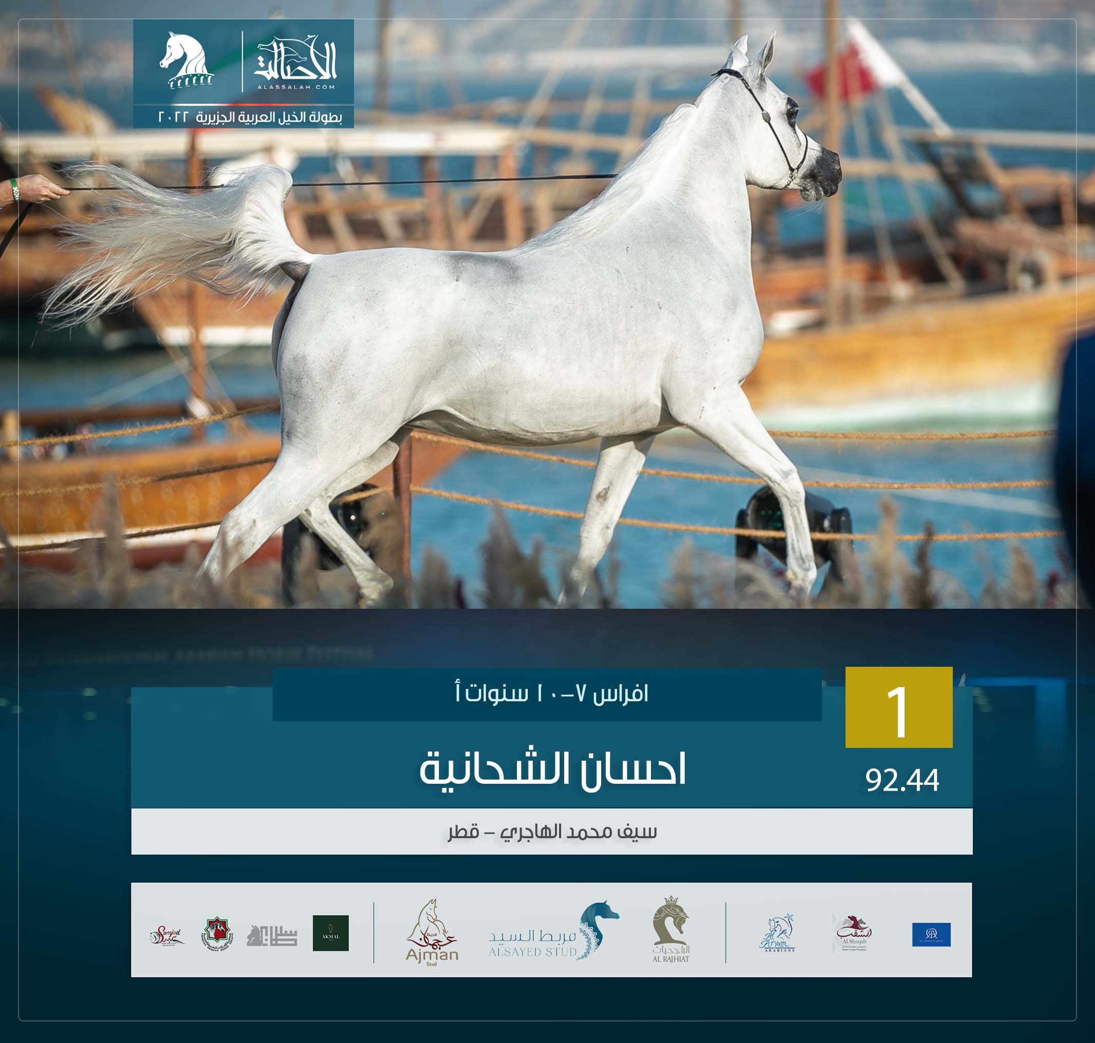 المركز الأول: احسان الشحانية (براق العلياء x سالوميه) مربط سيف محمد الهاجري- قطر.