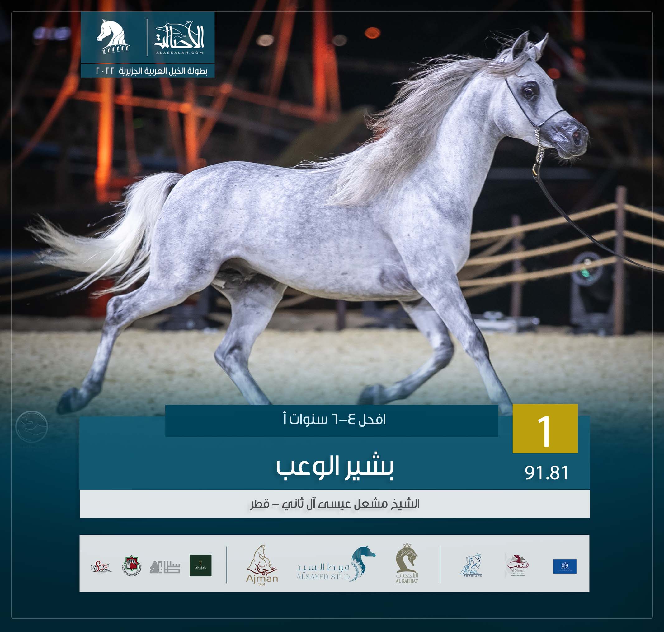 المركز الأول: بشير الوعب (سنان الريان x امال الوعب ) مربط الشيخ مشعل بن عيسى آل ثاني- قطر.