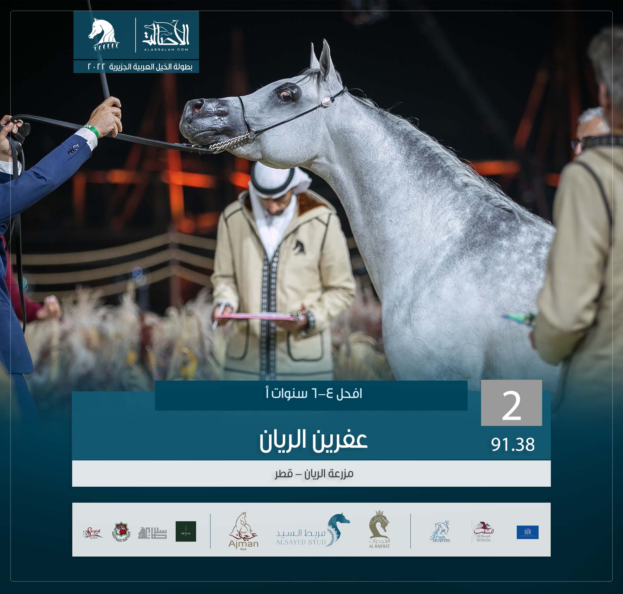 المركز الثاني: عفرين الريان (العديد الشقب x شالا الريان) مزرعة الريان- قطر.
