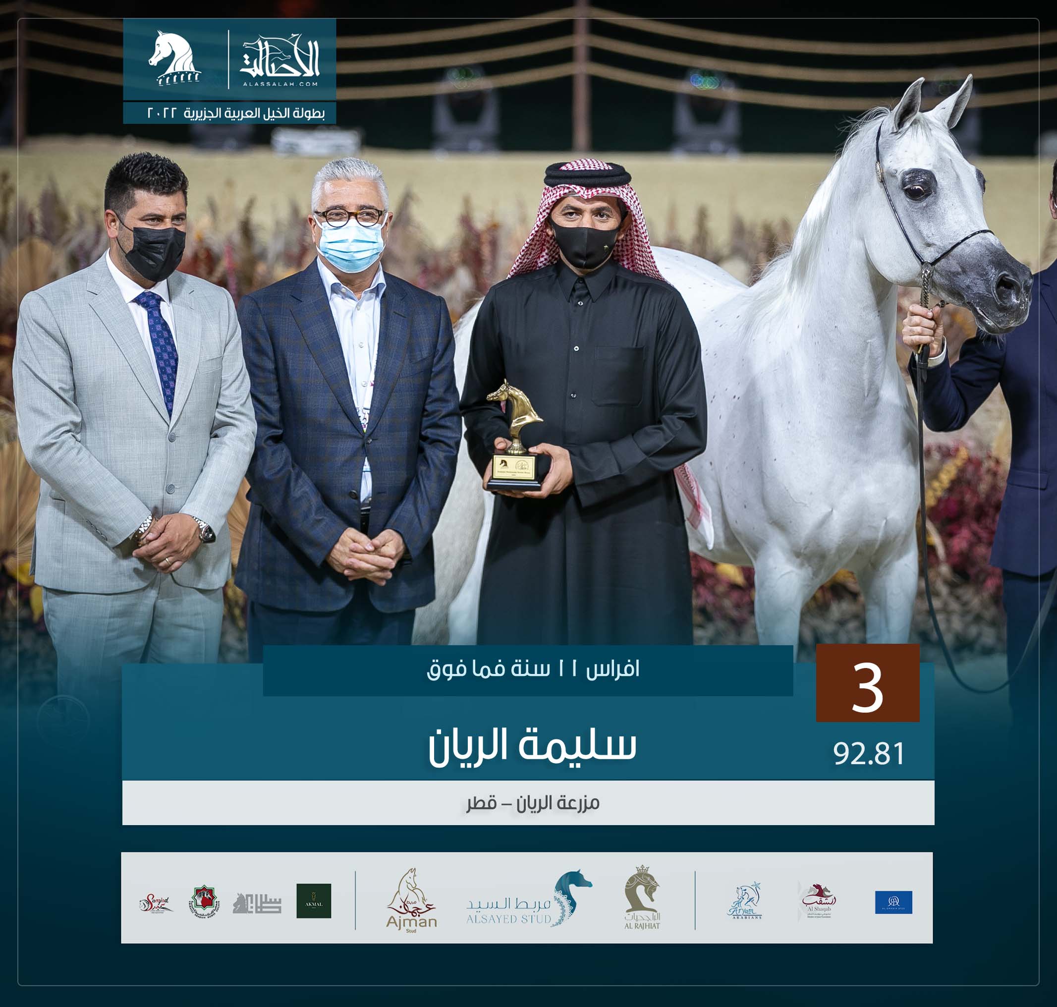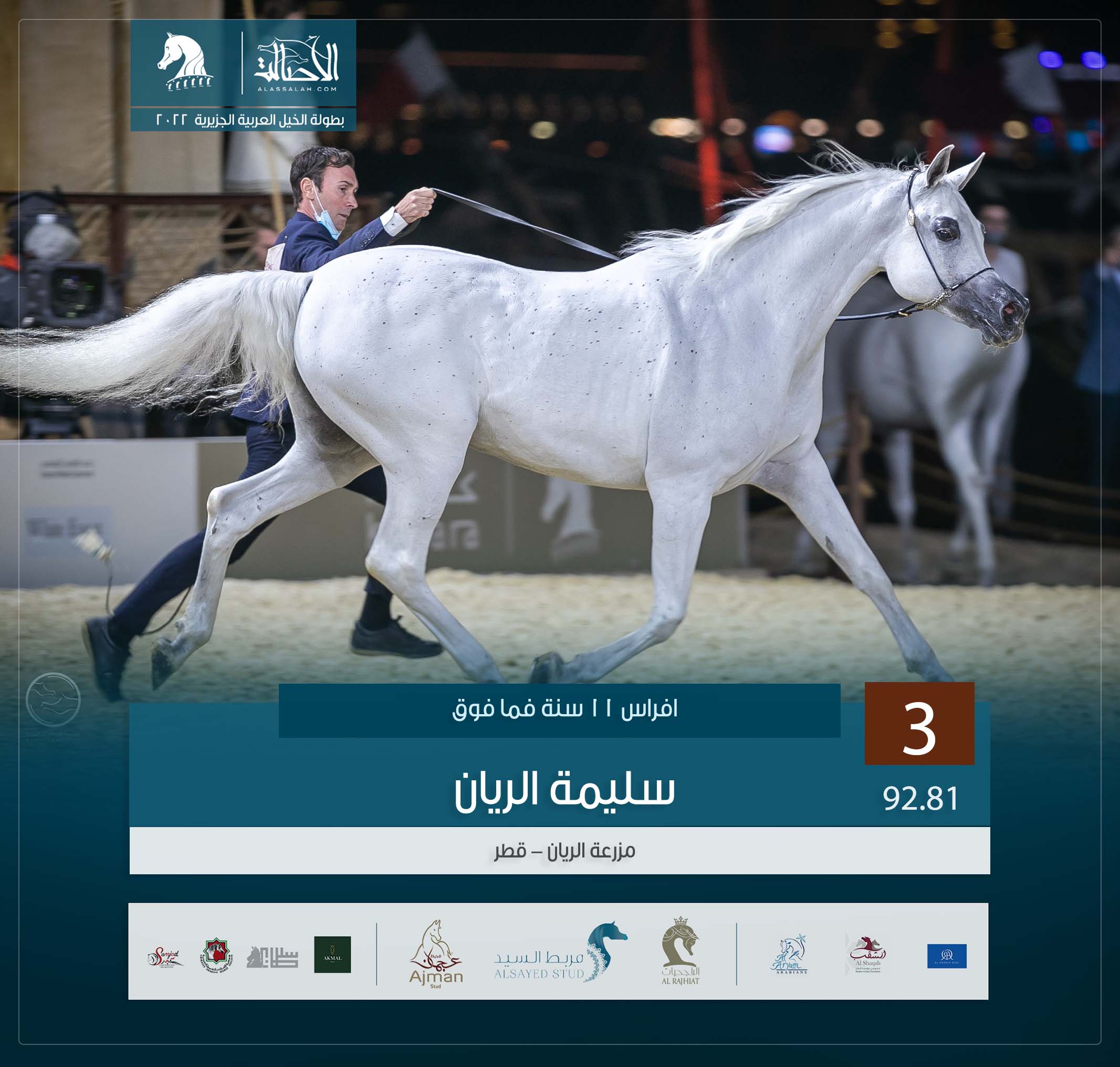 المركز الثالث: سليمة الريان (اشهل الريان x سلمى الريان) مزرعة الريان – قطر.