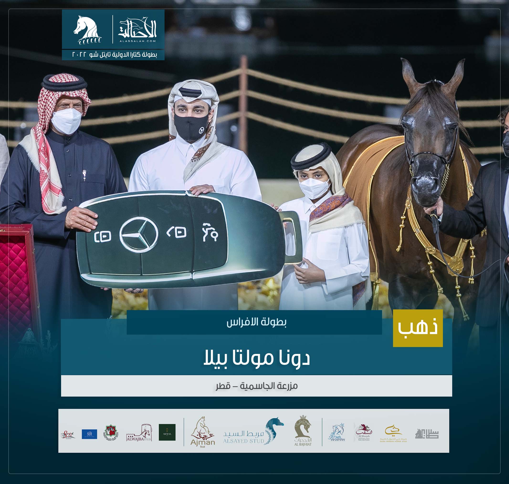 الذهب: دونا مولتا بيلا اس آر ايه (ايه دي فالينتينو x آر دي فابرينا) مزرعة الجاسمية- قطر.