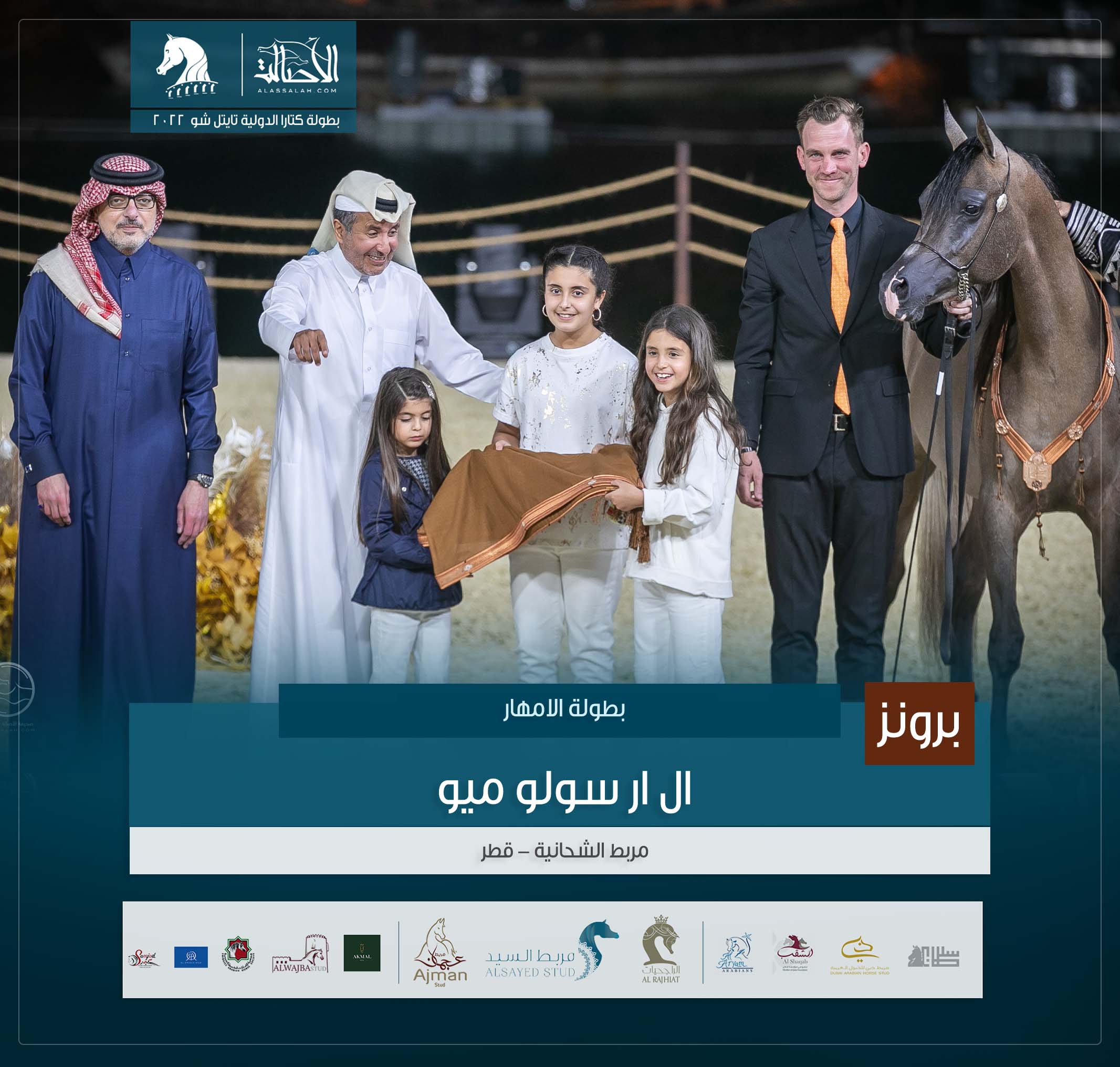 البرونز: ال آر سولو ام آي او ( ع ج ردمان X ال آر بيونا ام آي او) مربط الشحانية – قطر.