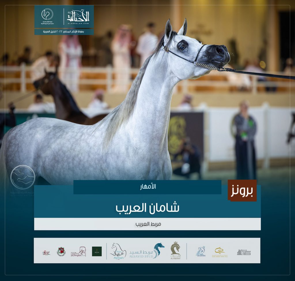 البرونز: شامان العريب (اكسكاليبور اي ايه x مرجانة النواصي) مربط العريب.