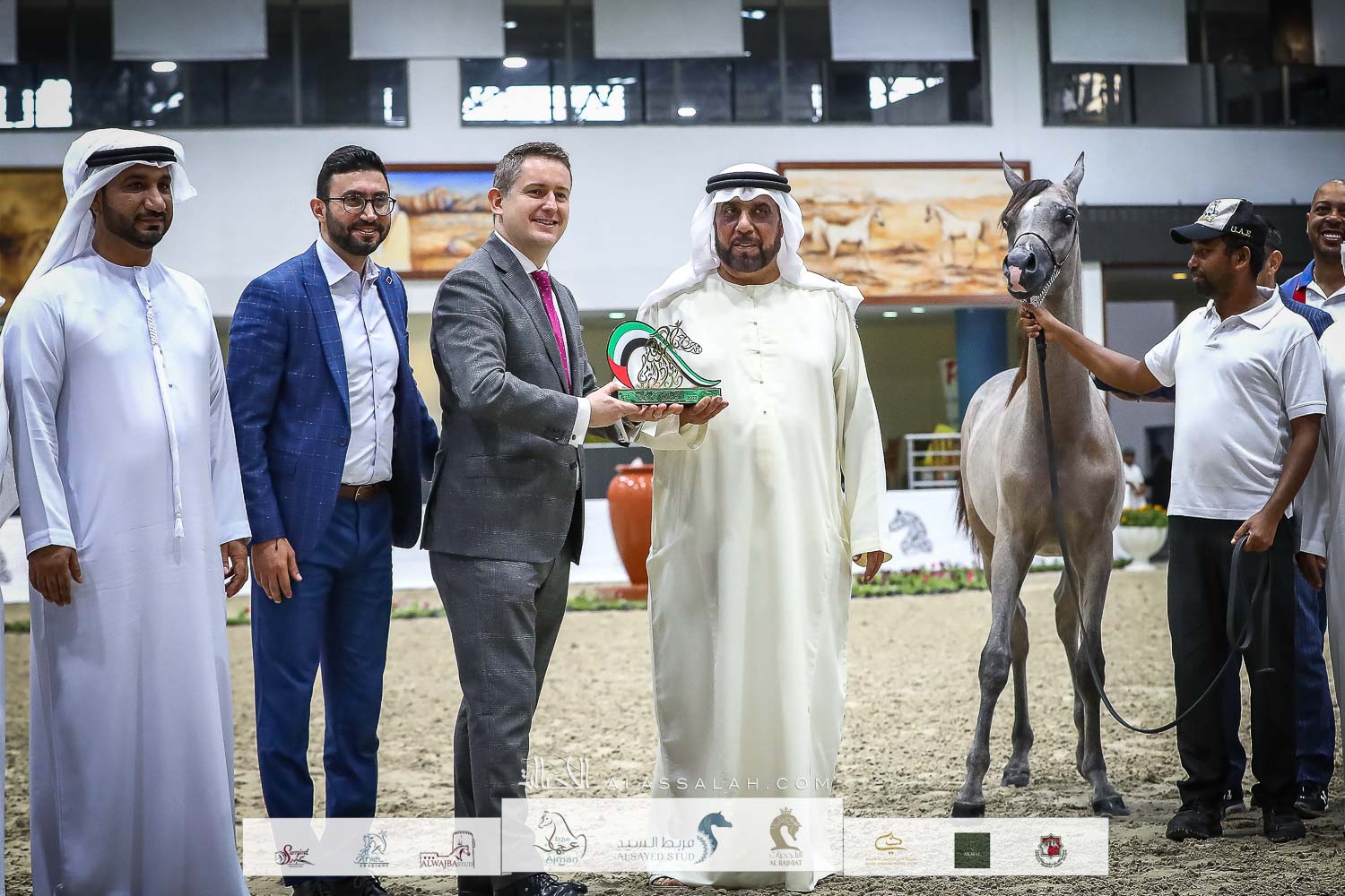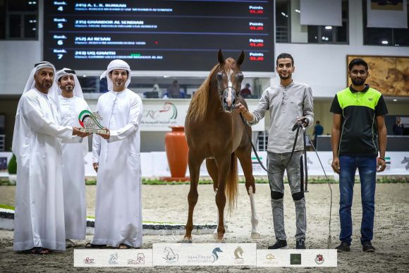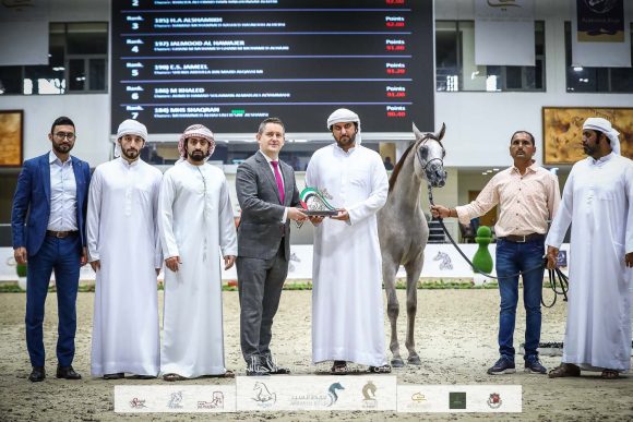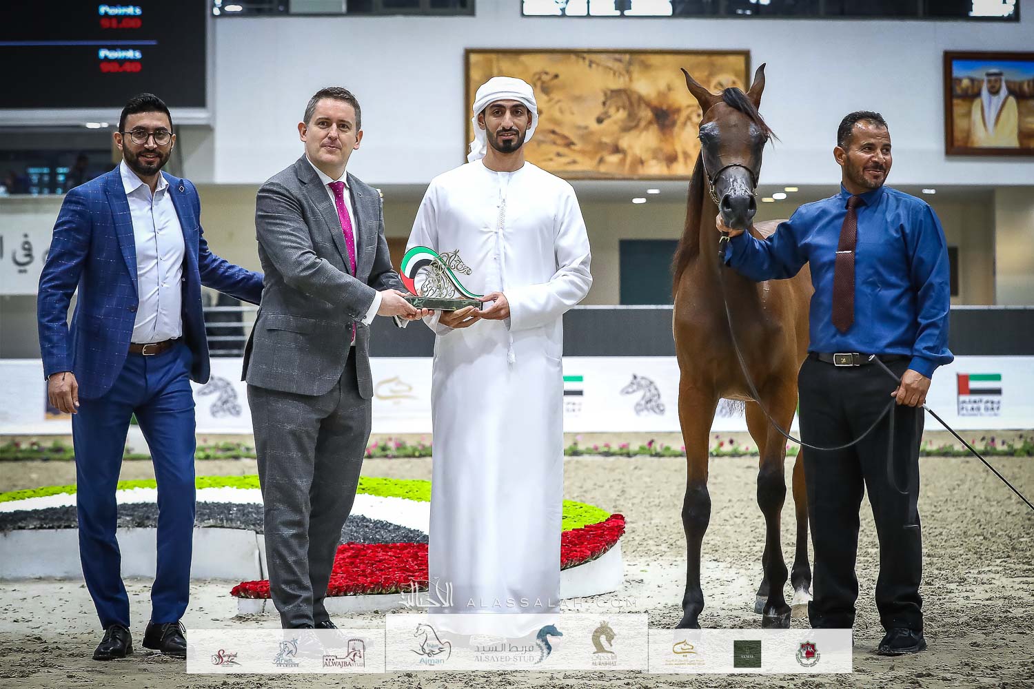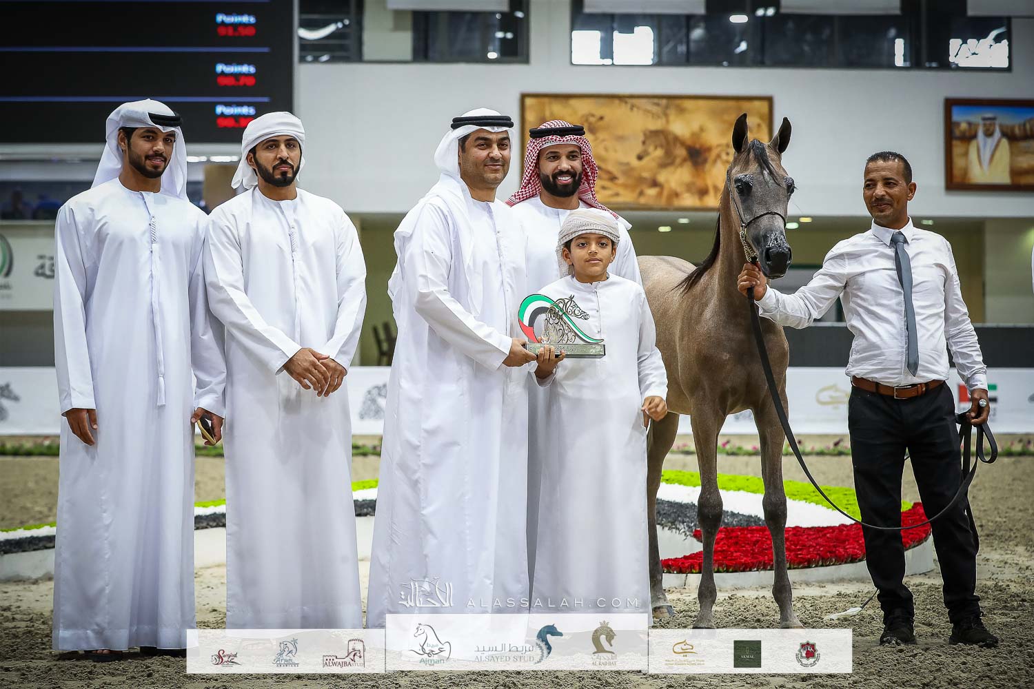 المركز الأول: ع ج نبار ( ع ج مرزان x ع ج نوره) مربط سعيد مصبح الكعبي. 92.70 نقطة.