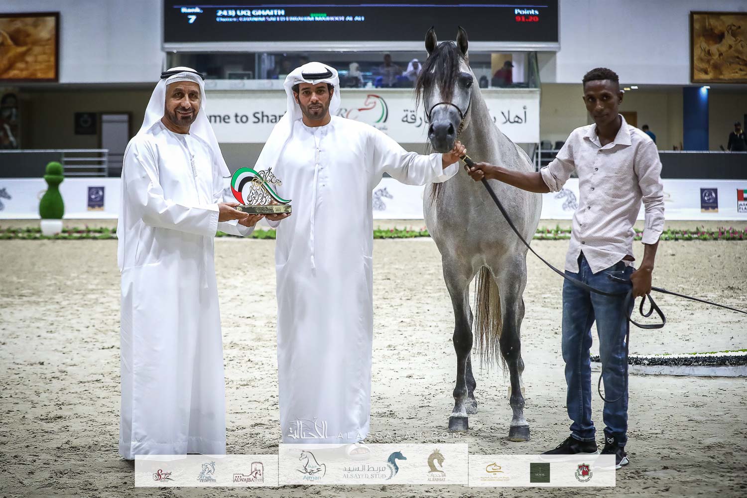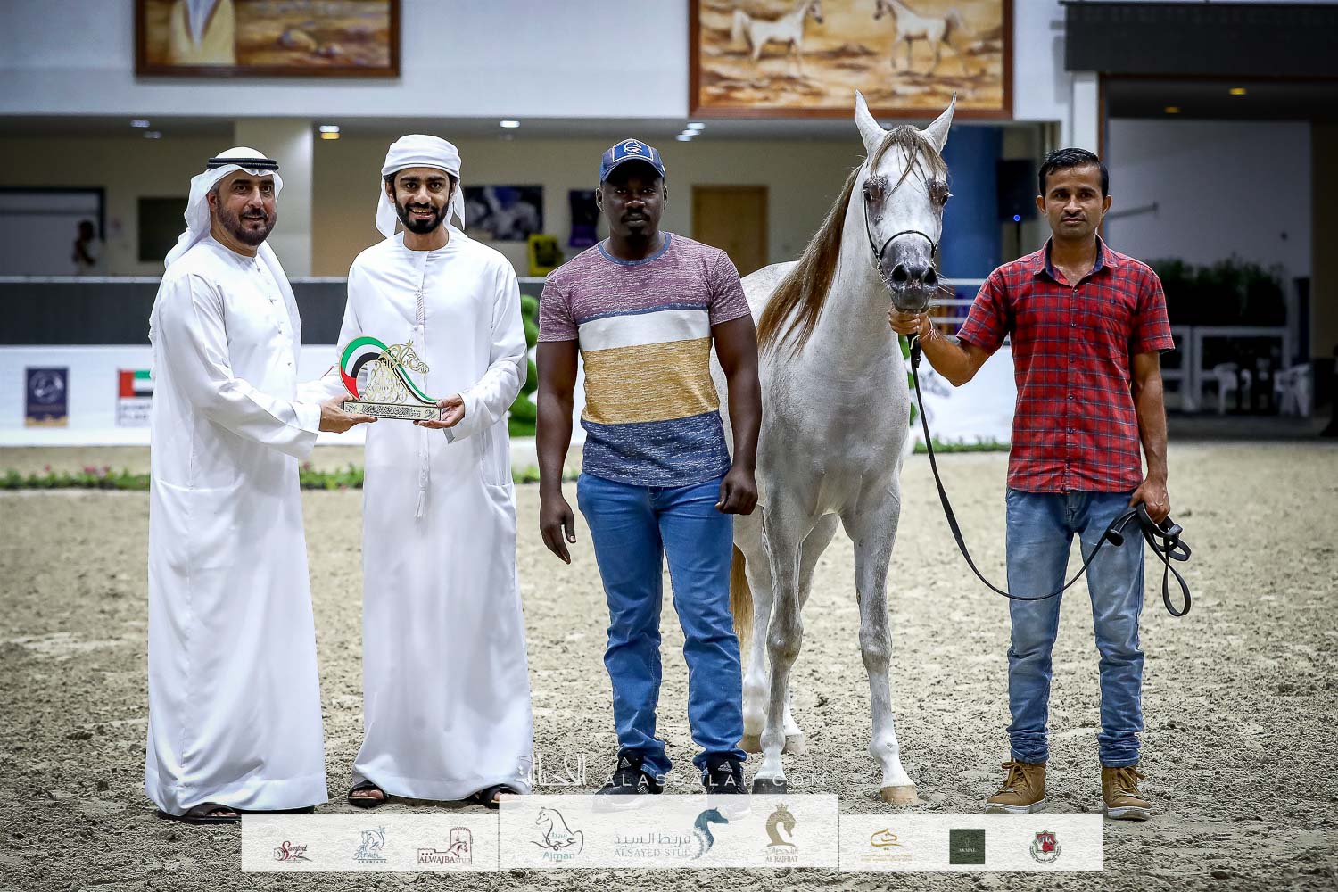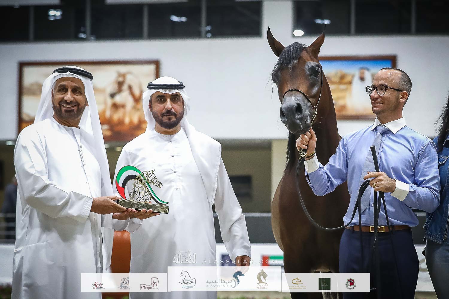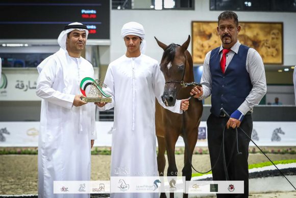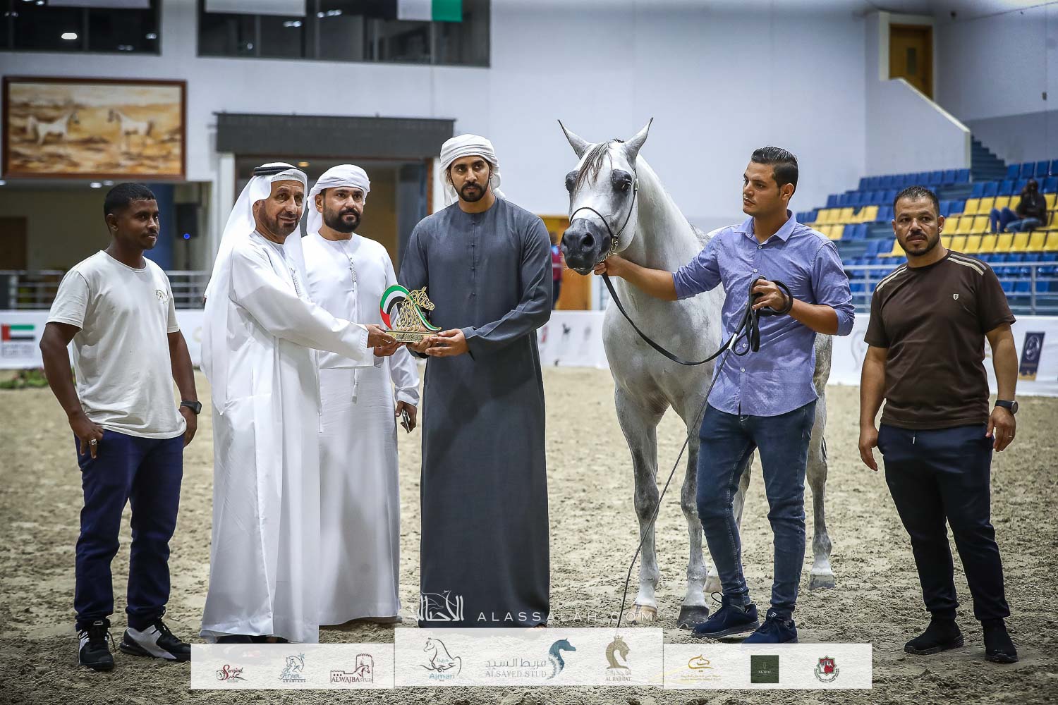 المركز الأول: ع ج نبار ( ع ج مرزان x ع ج نوره) مربط سعيد مصبح الكعبي. 92.70 نقطة.