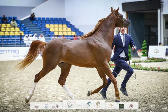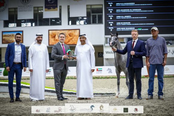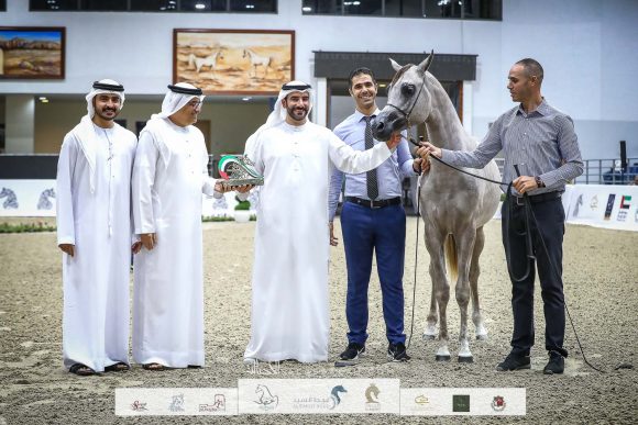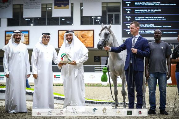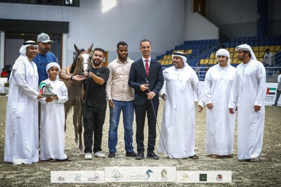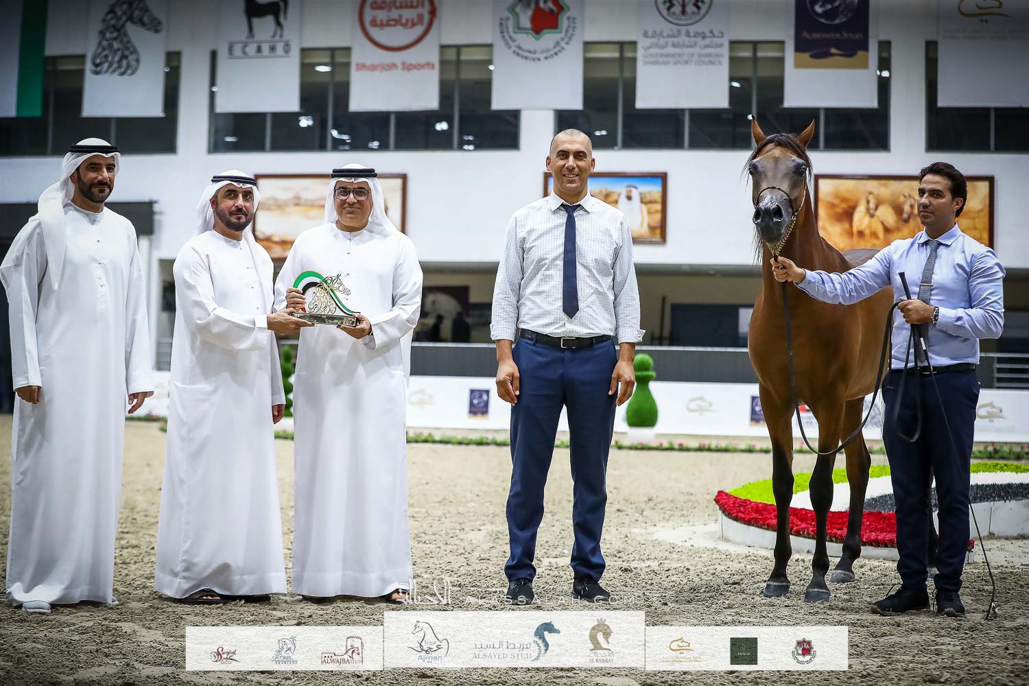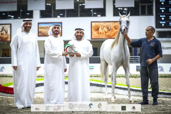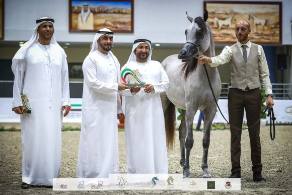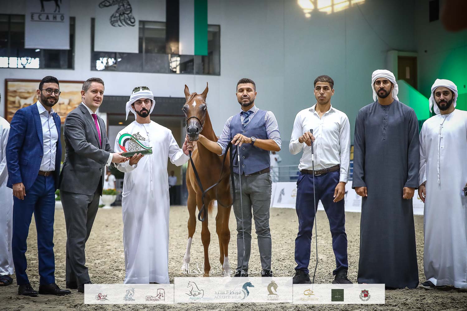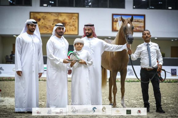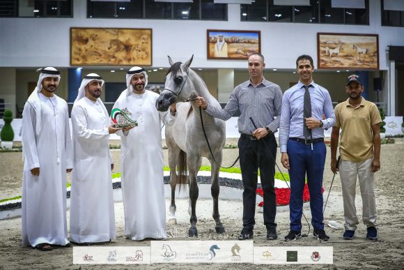 المركز الأول: ع ج نبار ( ع ج مرزان x ع ج نوره) مربط سعيد مصبح الكعبي. 92.70 نقطة.