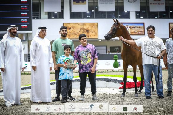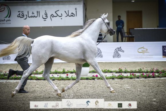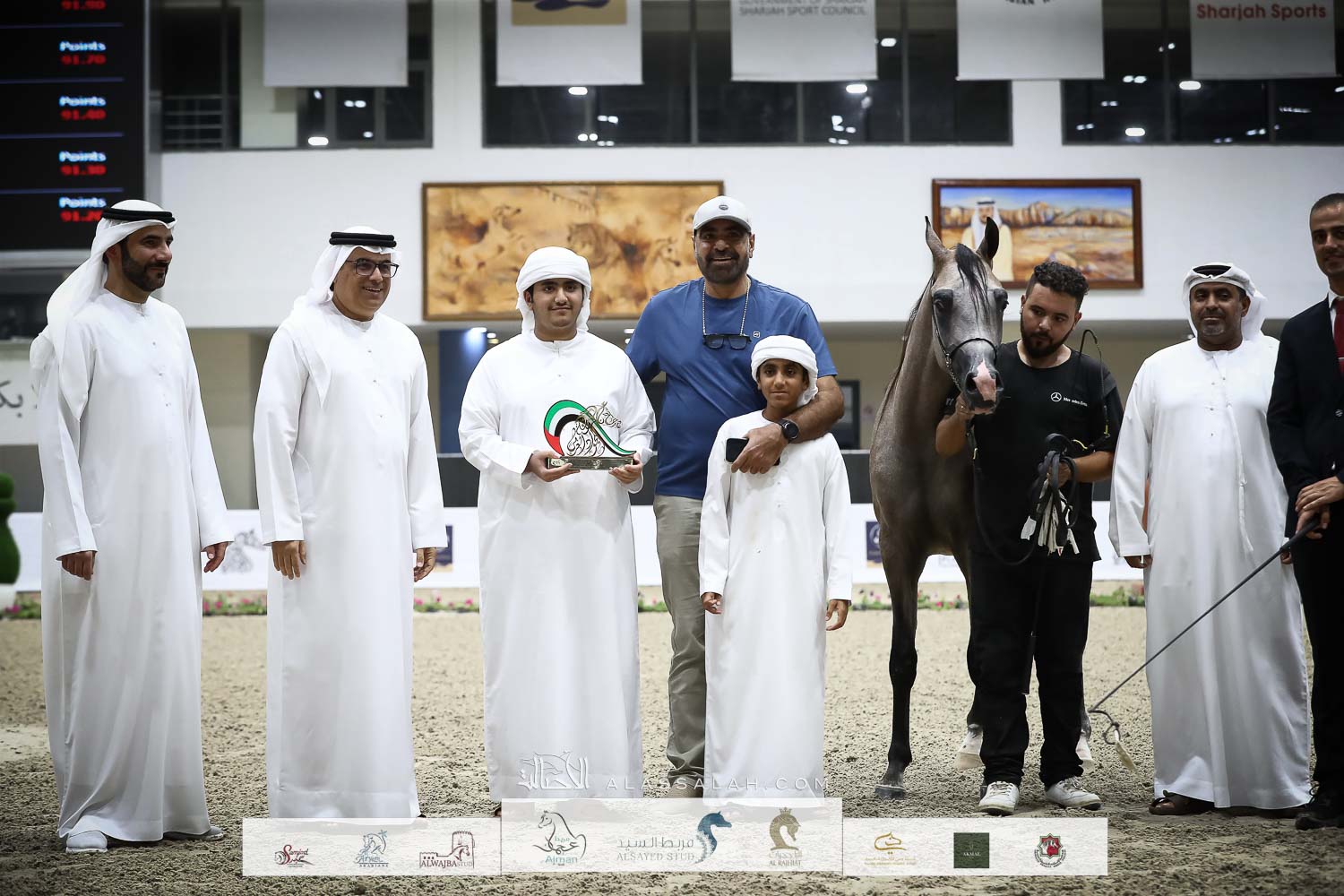 المركز الثاني: كلباء (اس ام اي ماجيك وان x فريدة) مربط سمو الشيخة مريم بنت سلطان بن أحمد القاسمي. 92.00 نقطة.