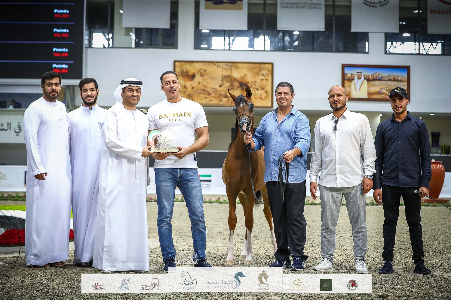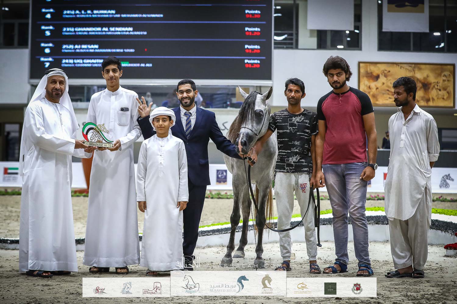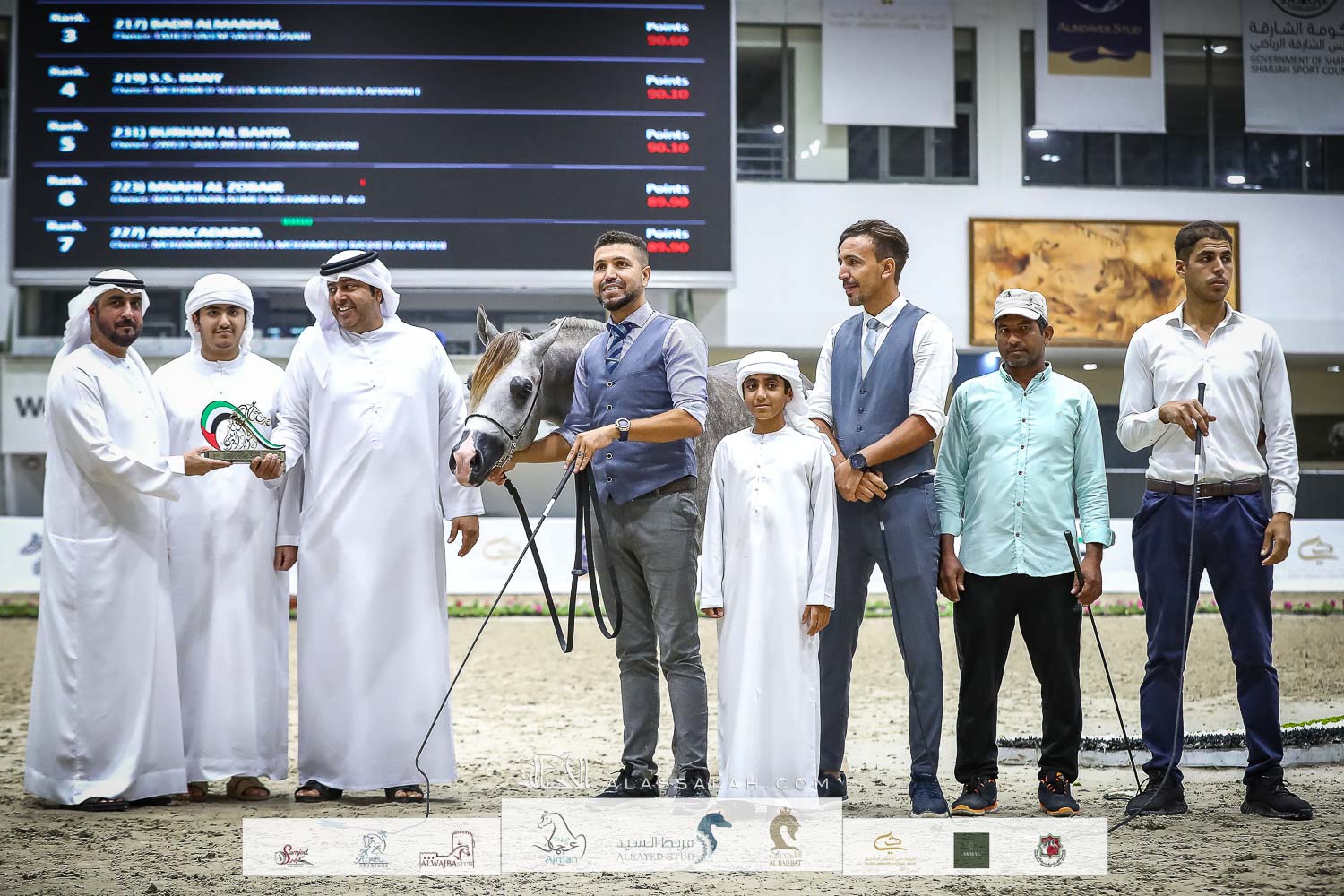 المركز الثاني: باسل الباهية (شنغهاي اي اي x ع ج بسمة) مربط الشيخ راشد بن سعيد بن راشد بن حميد النعيمي. 90.80 نقطة.
