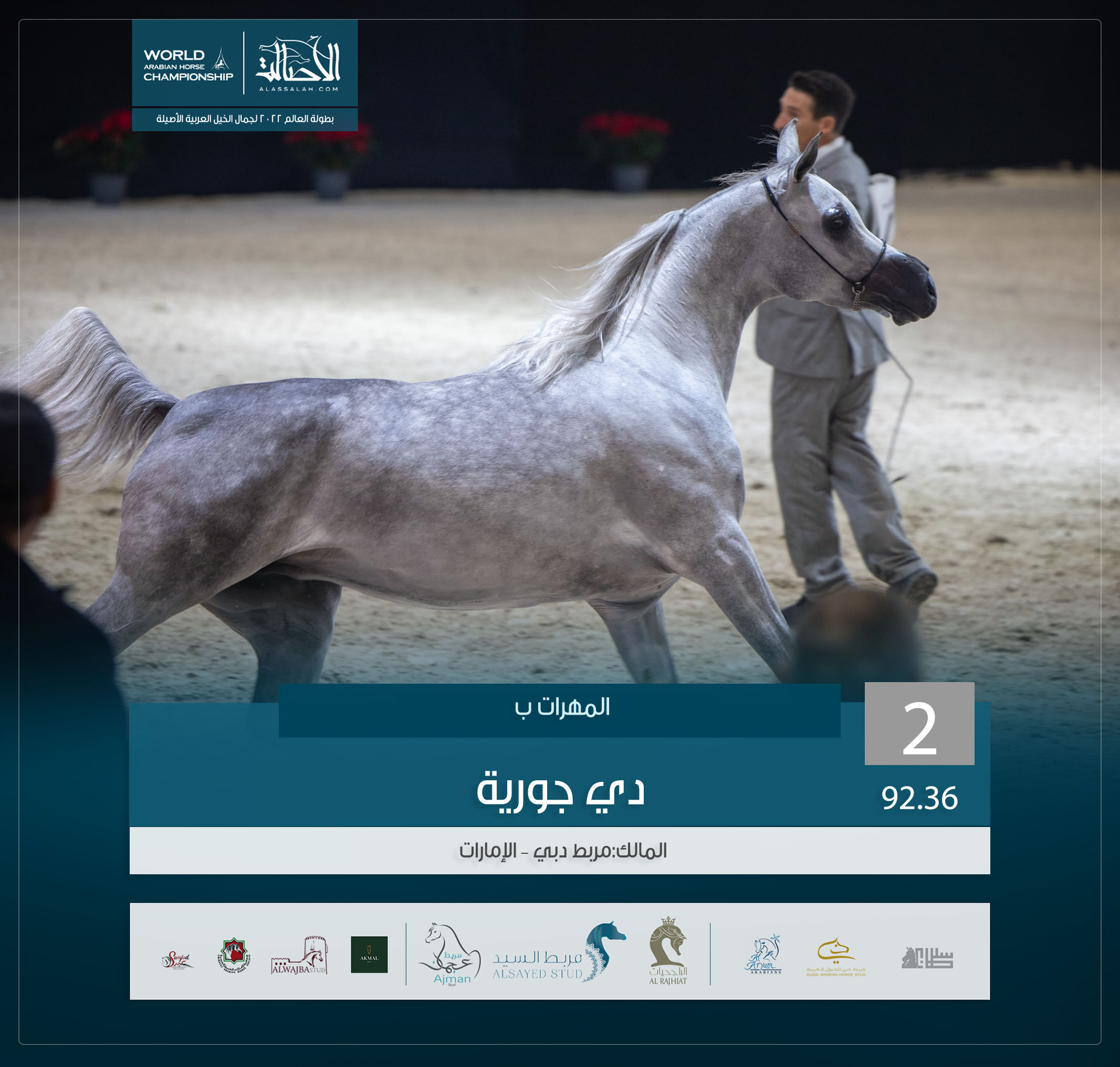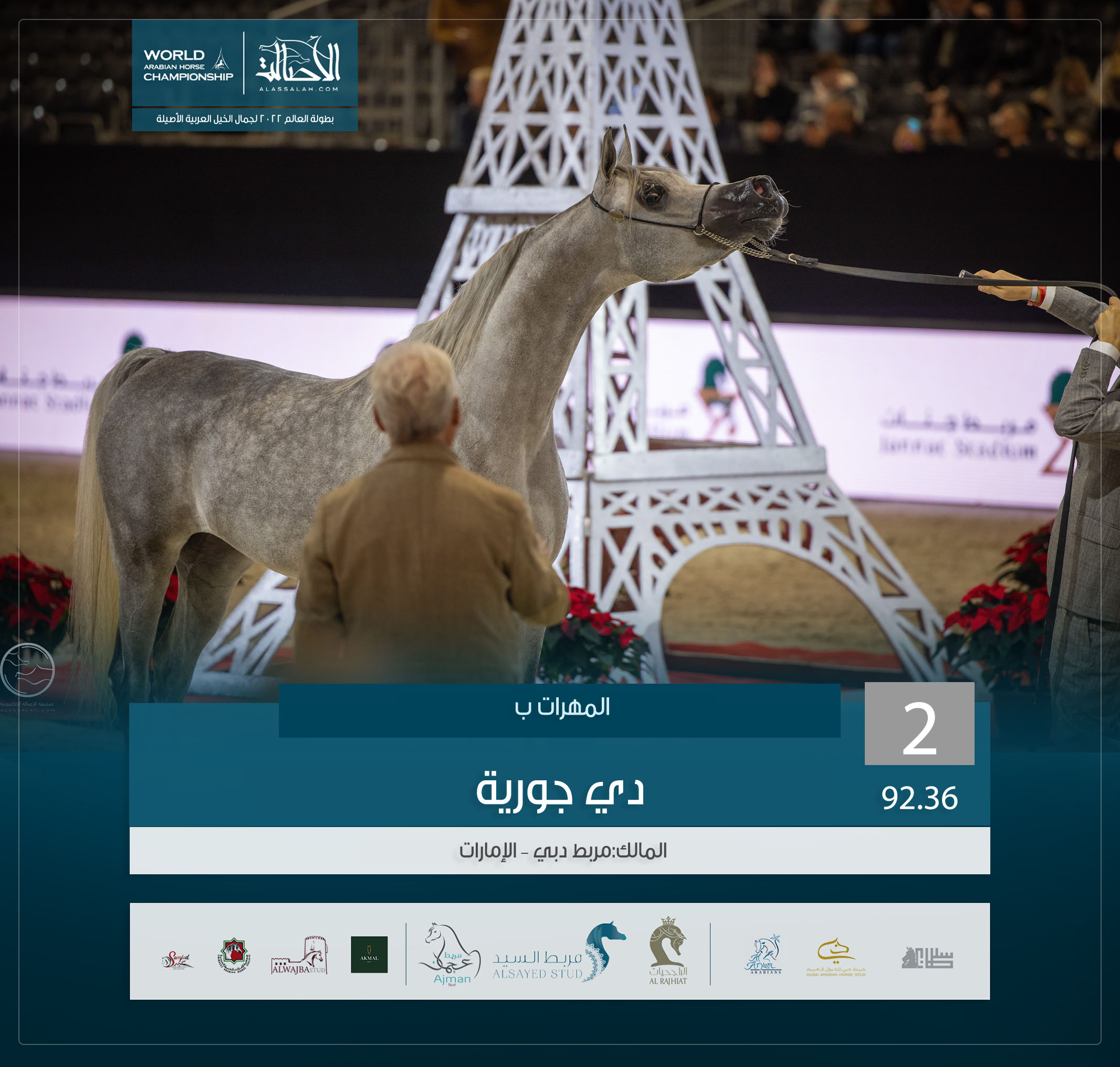 المركز الثاني: دي جورية (دي سراج x دي نوال) مربط دبي – الإمارات الدرجة:92.36