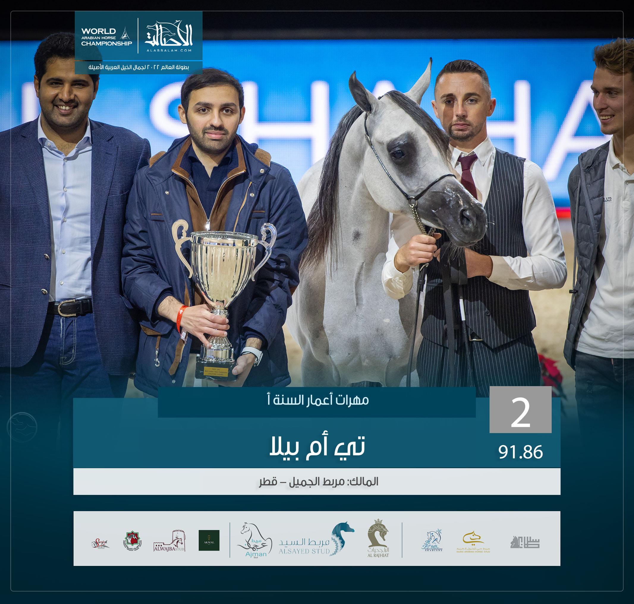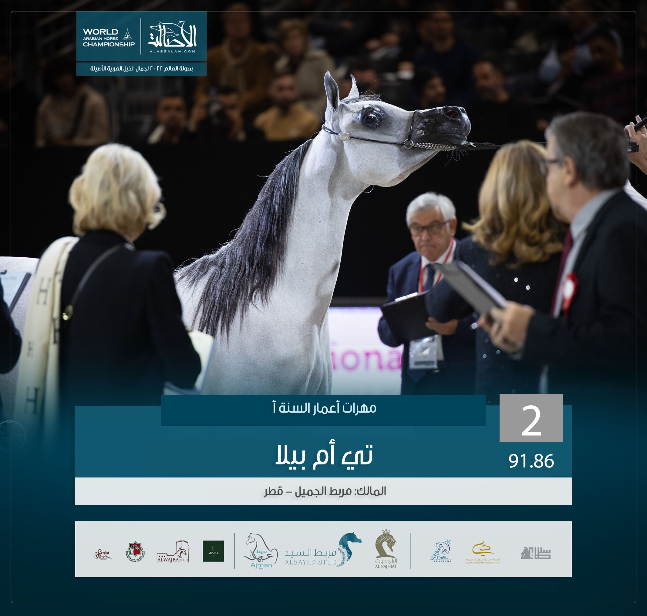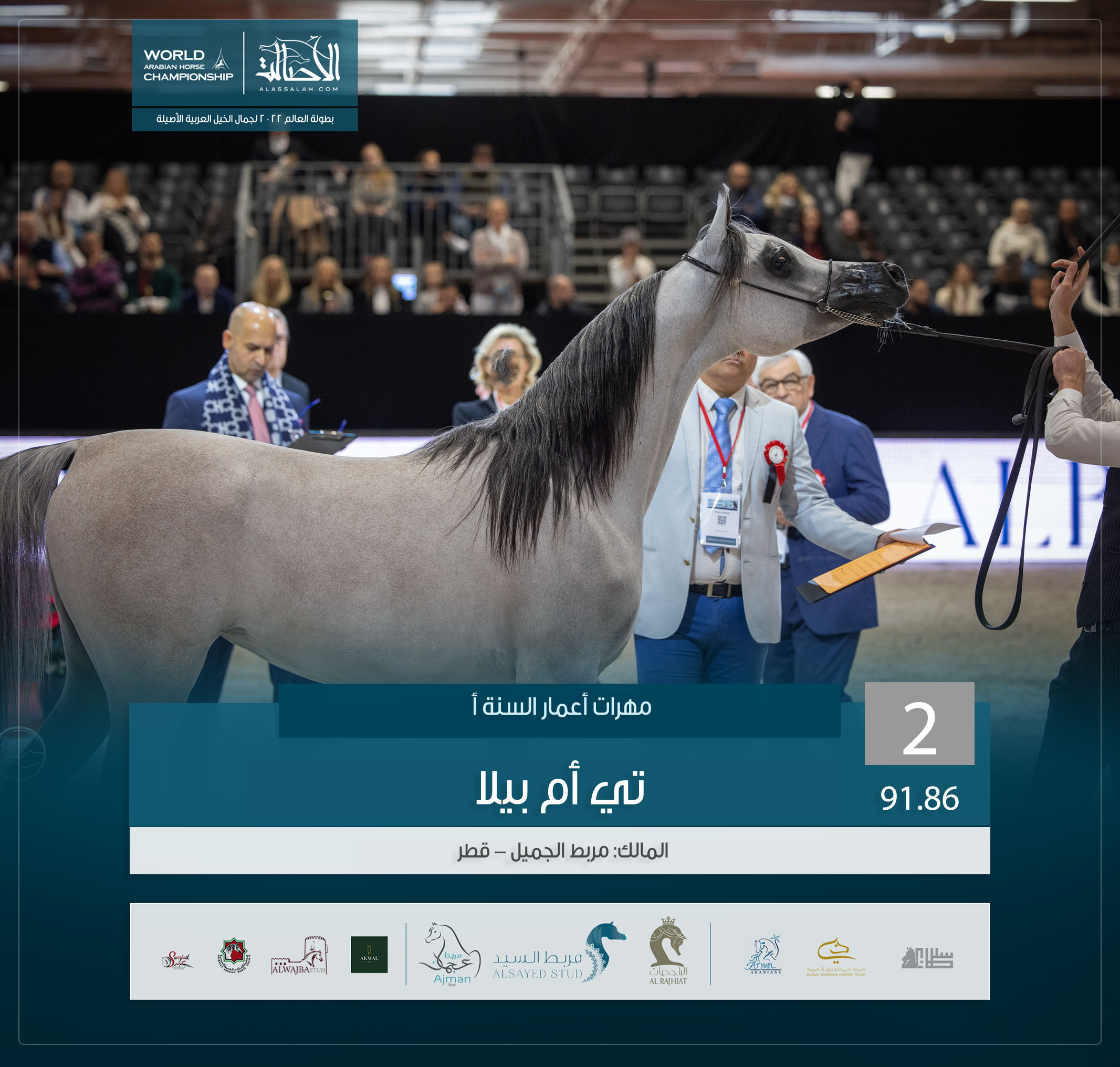 المركز الثاني: تي أم بيلا (تي ام ايتايبو x تي ام فهديلا) مربط الجميل – قطر الدرجة:91.86.