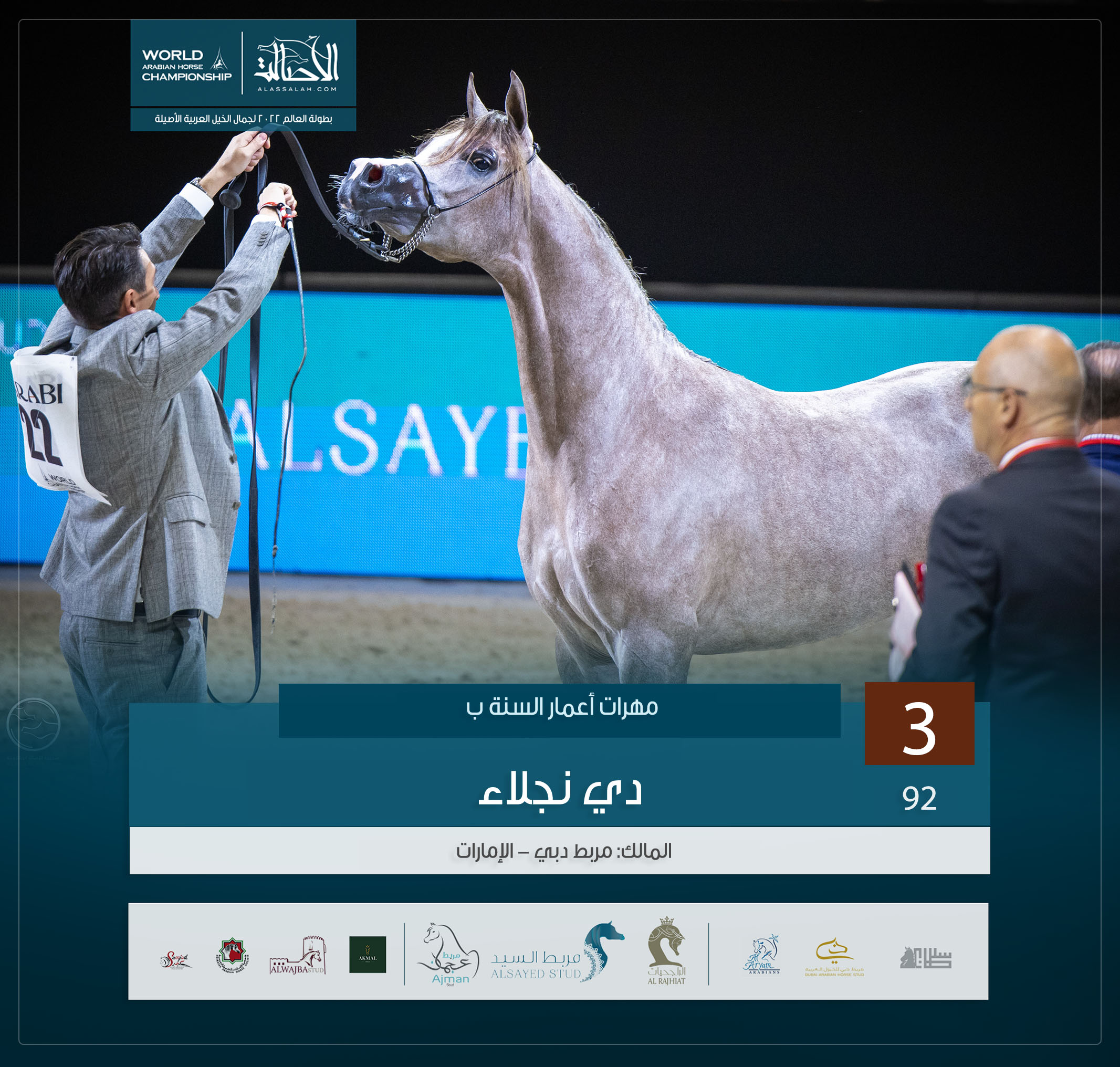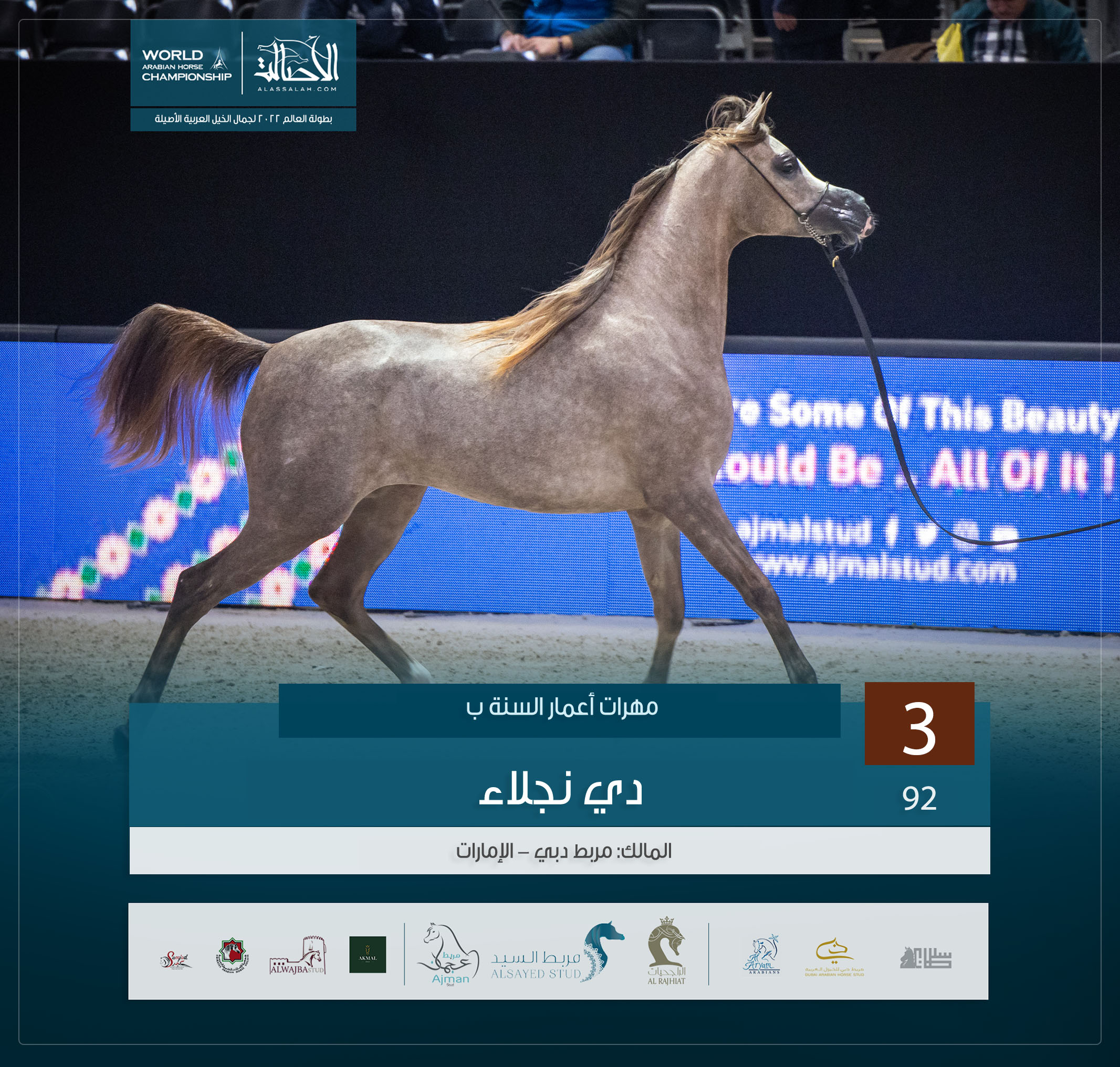 المركز الثالث: دي نجلاء (دي سراج x ايلي فلامنكا) مربط دبي – الإمارات الدرجة:92.00