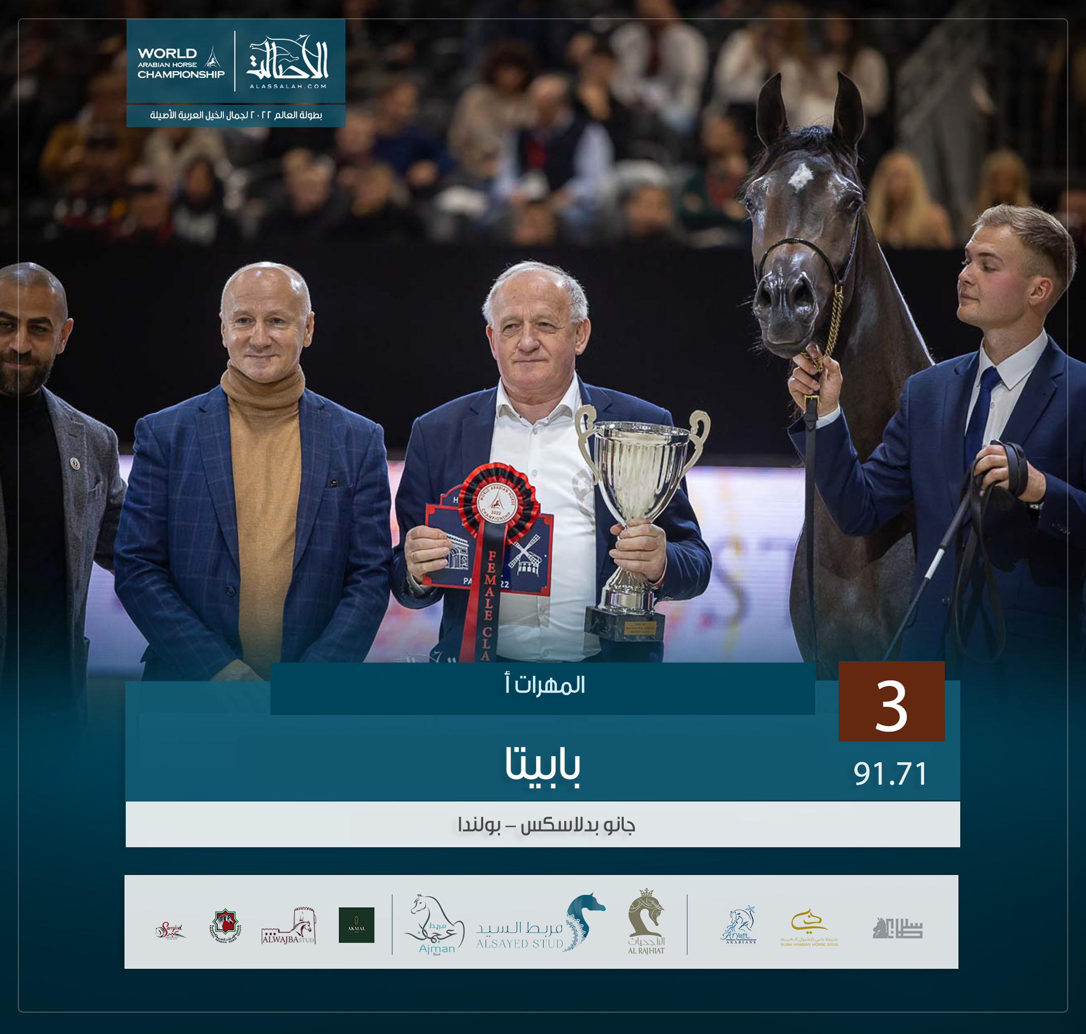 المركز الثالث: بابيتا (ايمرالد جيه x بليندا) مربط اس كيه بودلاسكي – بولندا الدرجة:91.71