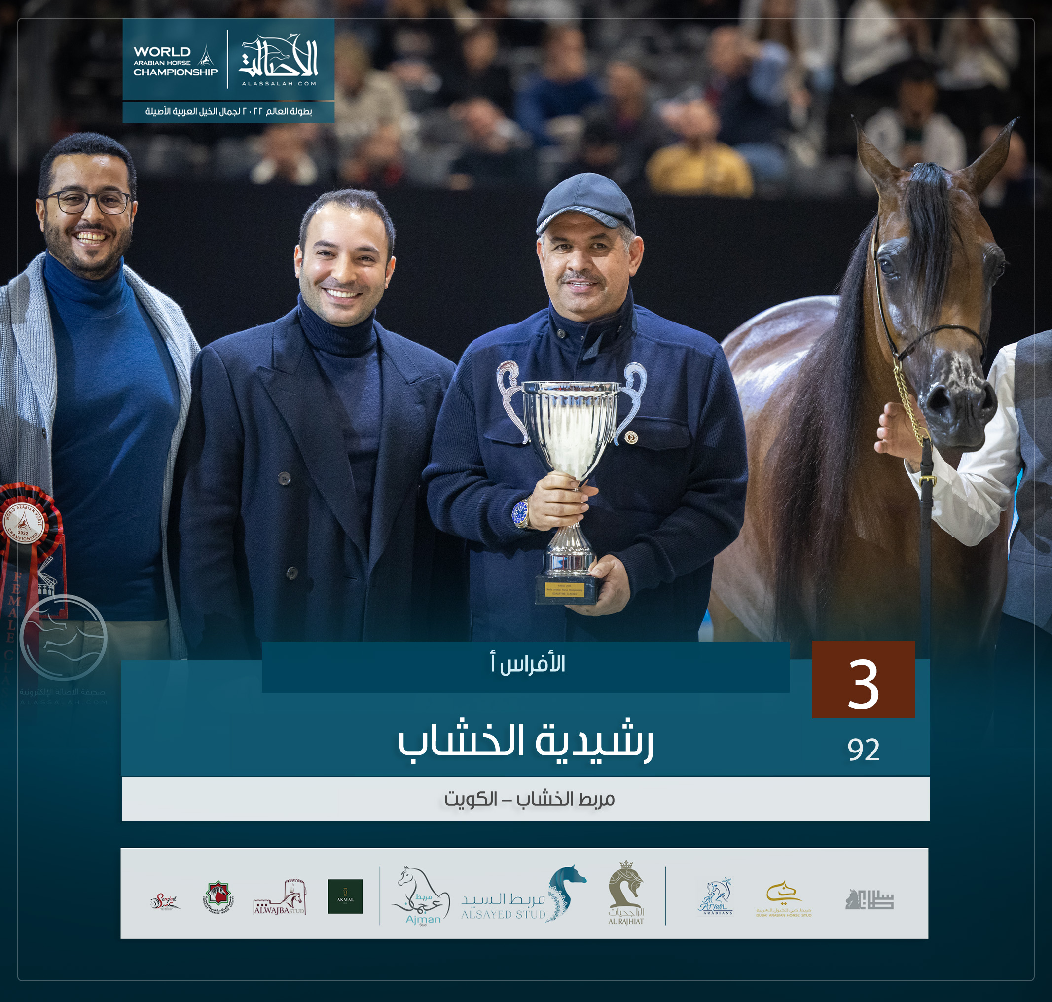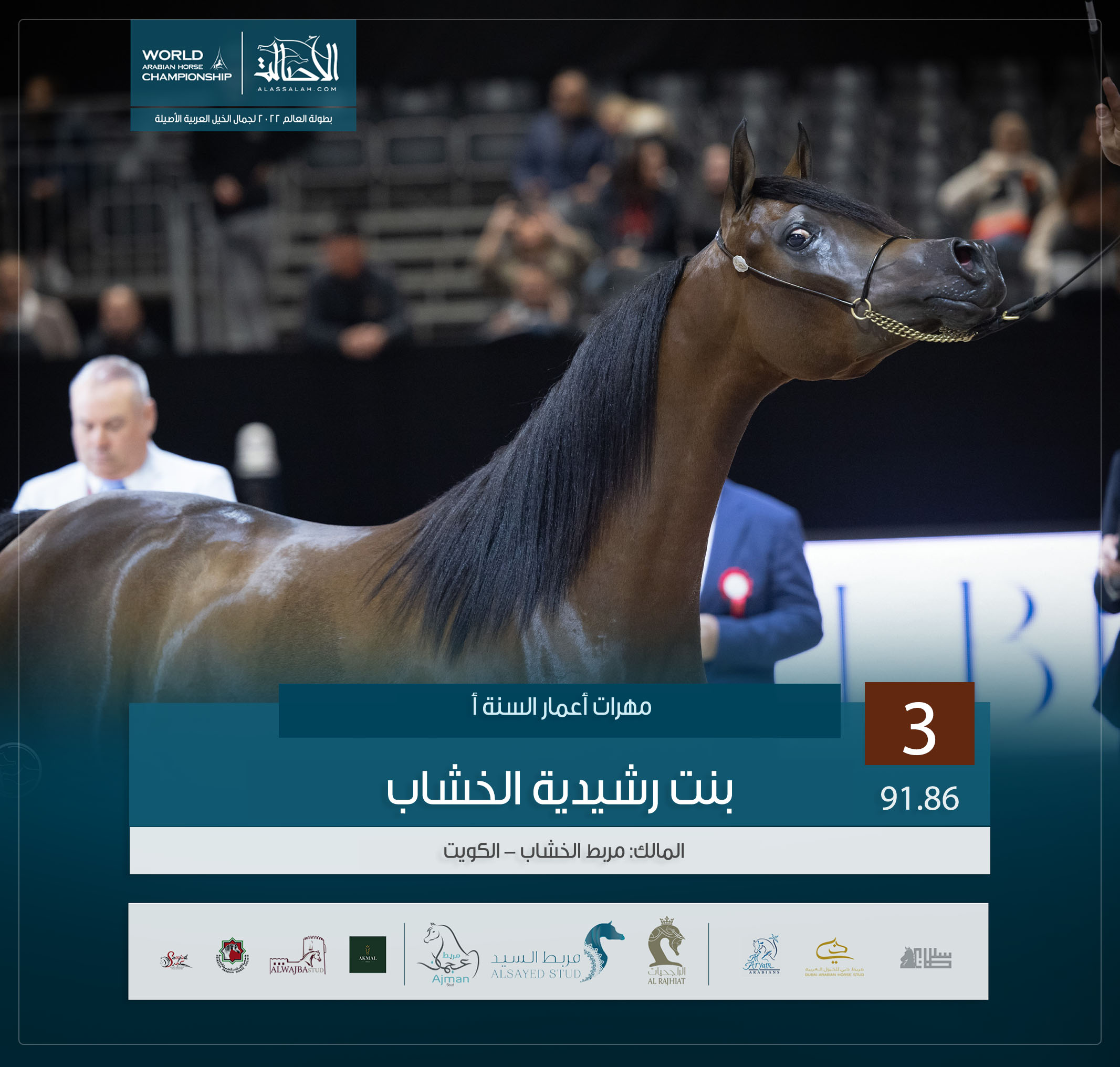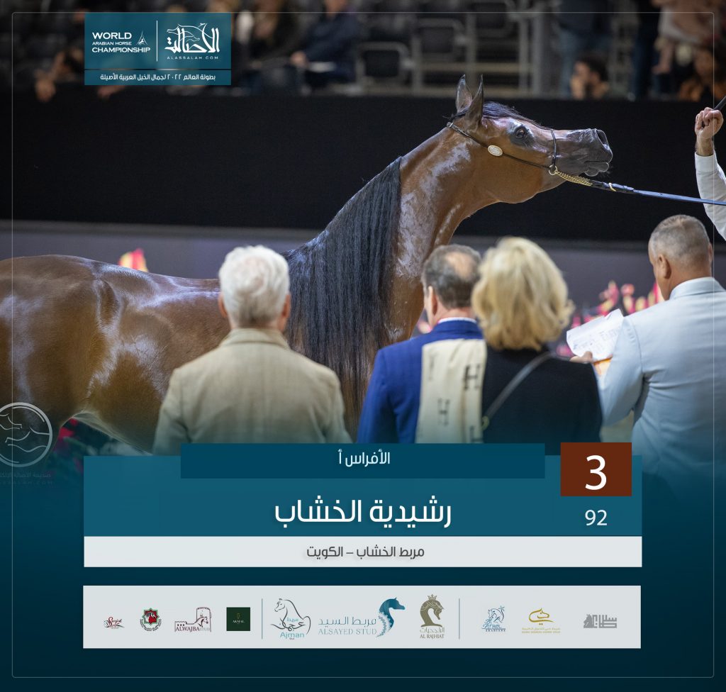 المركز الثالث: رشيدية الخشاب (اي كي اس اليهاندرو x سيمفوني أوف لاف) مربط الخشاب– الكويت الدرجة: 92.00