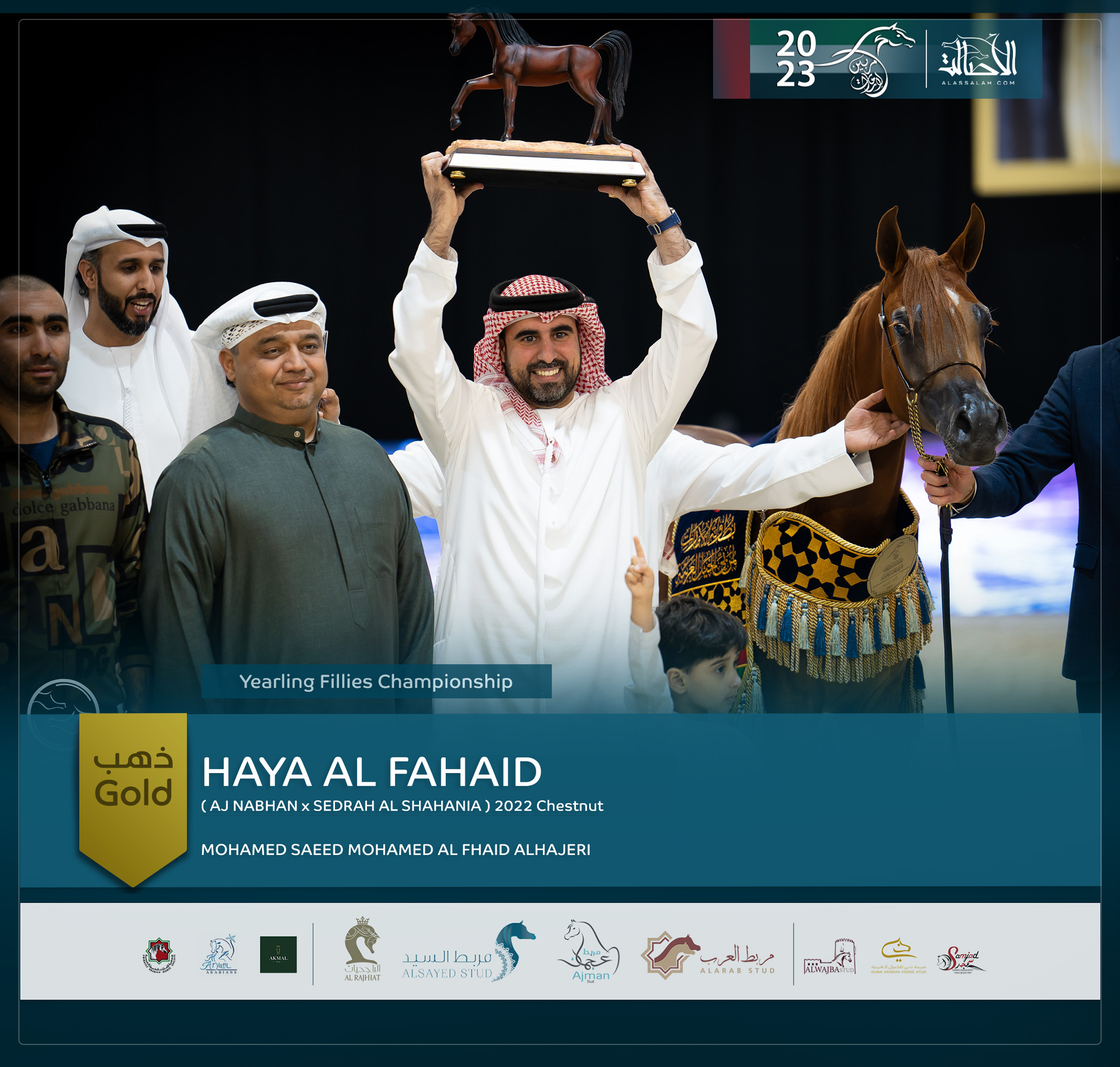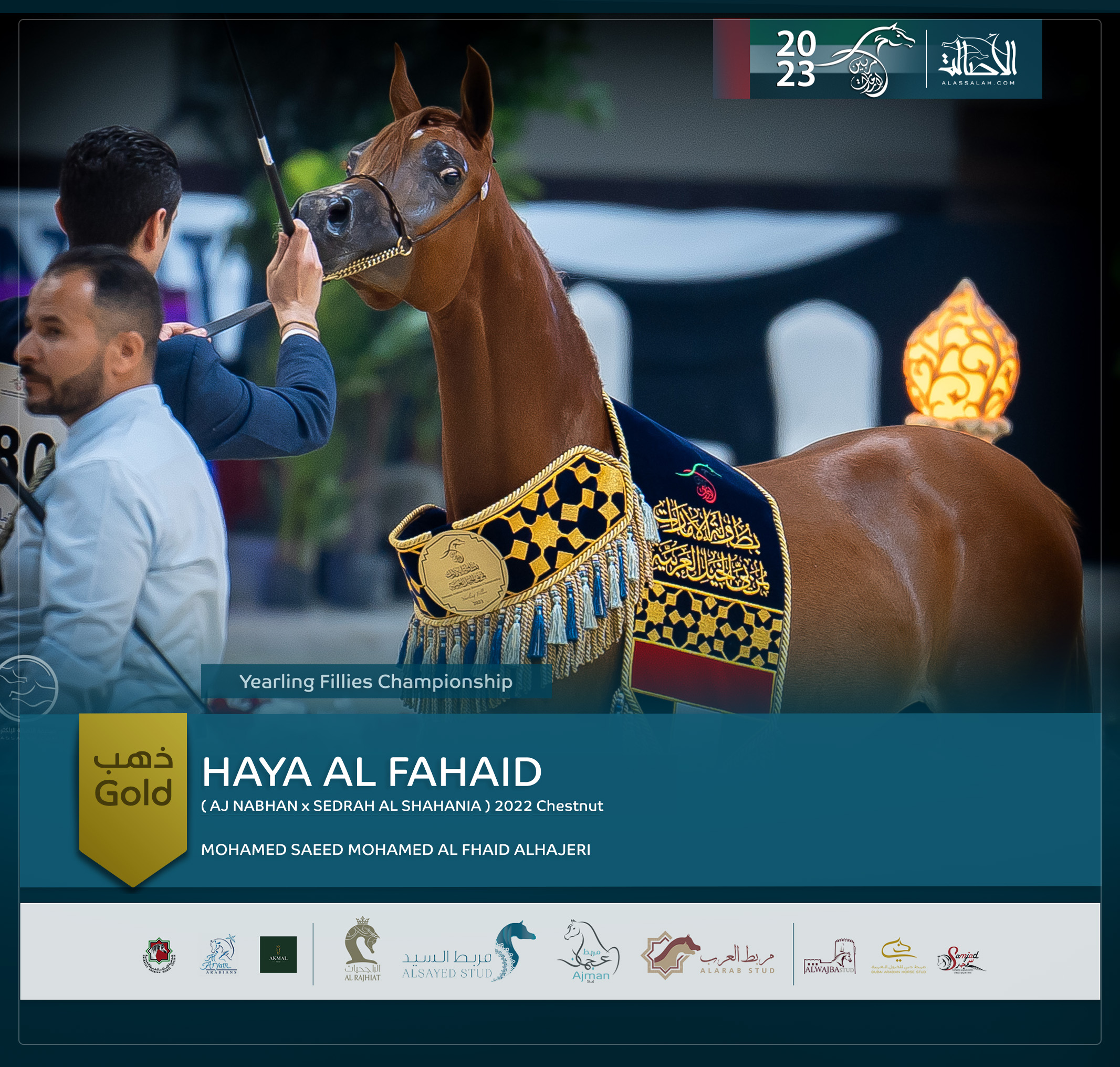 الذهب: هيا ال فهيد (ع ج نبهان x سدرة الشحانية) محمد سعيد الهاجري.