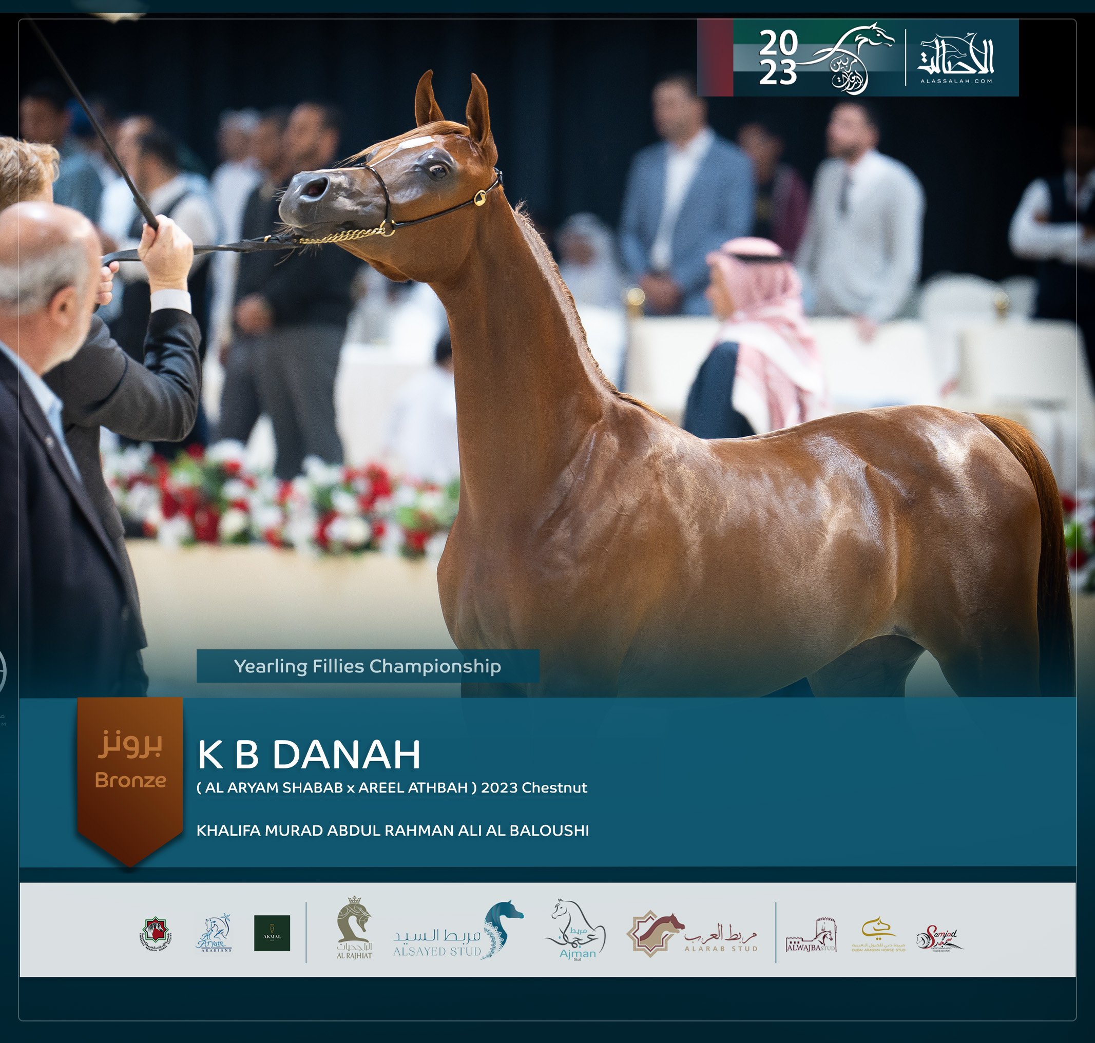 البرونز:اكسير الغيد (ع ج عجبان x انتجاز الغيد) مربط الغيد.