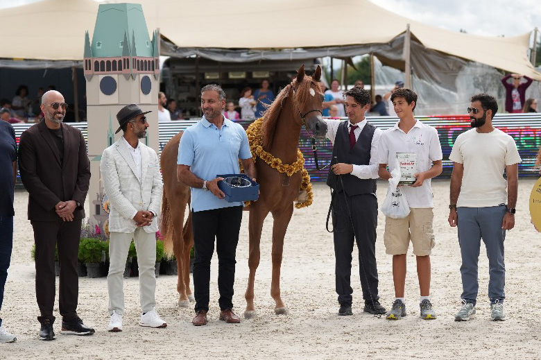 وأضافت المتألقة دي اسرة (ع ج نوفان x دي شيهانة) الذهبية الثانية عندما حلقت بلقب المهرات بعد نالت اجماع جميع الحكام لتحقق الذهبية السادسة خلال مسيرتها المميزة فضلا عن عدد من الألقاب الاخرى.