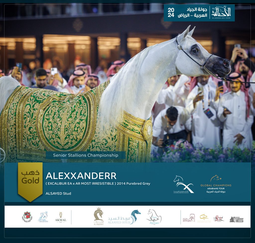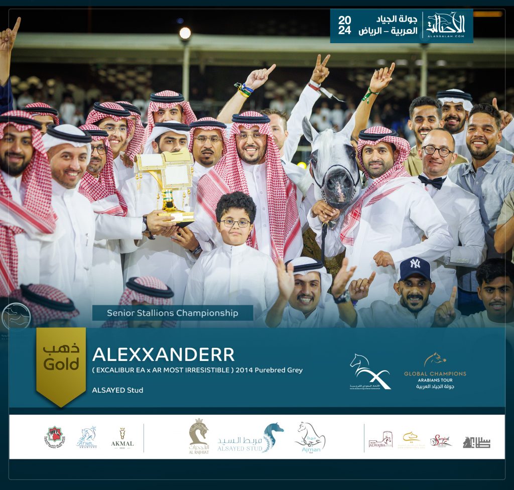 “أليكساندر” (إكسكاليبور إي إي × إيه آر موست إريزيستابل) حقق أعلى معدل نقاط في البطولة، متصدرًا شوط الفحول بعمر 7-10 سنوات برصيد 93.93 نقطة. ويأتي هذا الإنجاز كإضافة لسجل ذهبي حافل يضم 7 بطولات ذهبية، من بينها بطولة العالم في باريس 2022 وبطولة الأمم في آخن للعام نفسه.
