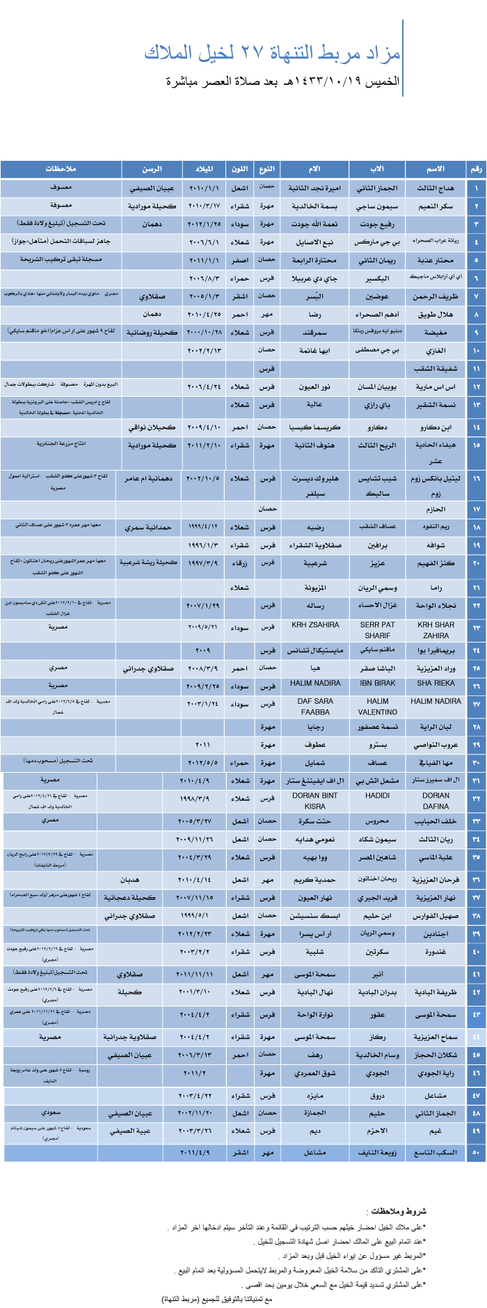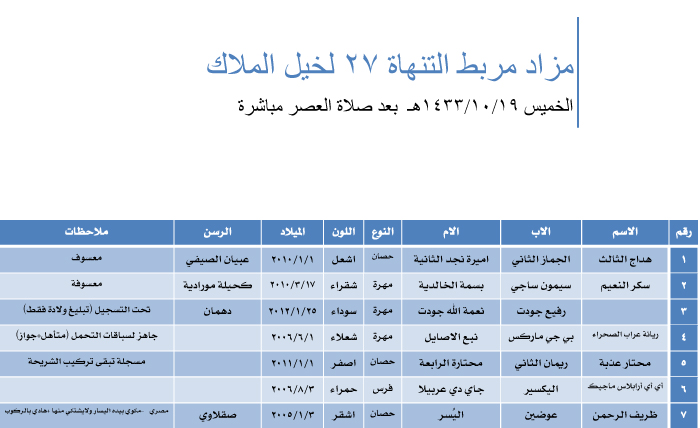 قائمة مزاد التنهاة ٢٧ للخيل العربية الأصيلة نشر في:مزادات|الكاتب: صحيفة الأصالة|2012/09/02 الرئيسية » الأخبار والمقالات » مزادات » قائمة مزاد التنهاة ٢٧ للخيل العربية الأصيلة 6945 لتحميل ملف الـ pdf اضغط هنا الرابط المختصر لهذا المقال: https://alassalah.com/GB8ve إضافة تعليق إلغاء الردلن يتم نشر عنوان بريدك الإلكتروني. تشير إلى ان الحقل مطلوب *الاسم* البريد الإلكتروني* الموقع الشخصي (ويب) Save my name, email, and website in this browser for the next time I comment. Δ هذا الموقع يستخدم Akismet للحدّ من التعليقات المزعجة والغير مرغوبة. تعرّف على كيفية معالجة بيانات تعليقك.