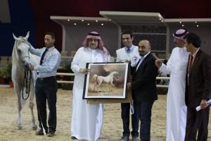 وبعد استراحه قصيرة قام جلالة ملك المغرب بجولة في المعرض و استقبله الامير عبدالعزيز بن احمد بن عبدالعزيز في جناح منظمة الجواد العربي المشاركة في المعرض ، حيث قدم سموه لجلالته شرحا عن تاريخ و اهداف منظمة الجواد العربي والبطولات والدورات والندوات التي تقدمها بالاضافة الى خدمات المنظمة للملاك والمربين في الوطن العربي و اوروبا .