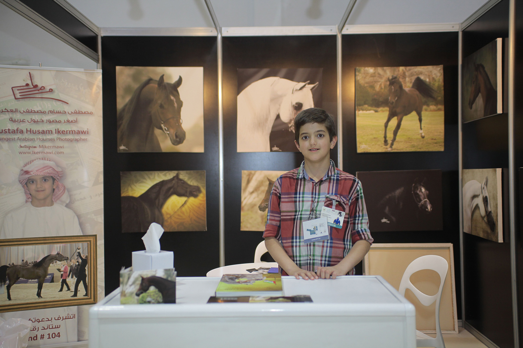مصطفي أصغر مصور للخيول العربية – كما يحب أن يصف نفسه – يشارك بجناح في معرض دبي الدولي للخيل، ويعرض بجناحه أجمل اللقطات التي التقطها في بطولات عدة. وتستوقف صور مصطفى الجذابة زوار المعرض، وهو يقوم بعرضها في جناحه بعد تصويرها في مسابقات مختلفة، ويقول مصطفى وهو أردني من أصل فلسطيني، وطالب بالصف الرابع الابتدائي بمدرسة الشويفات في عمان: “وجدت في تصوير الخيول متعة كبيرة وقد بدأت رحلتي مع التصوير منذ أن كان عمري 5 سنوات، وأنا أعتبر أن بطولة دبي الدولية للجواد العربي هي أهم بطولة أشارك في تصويرها وأحب حضورها سنوياً”.