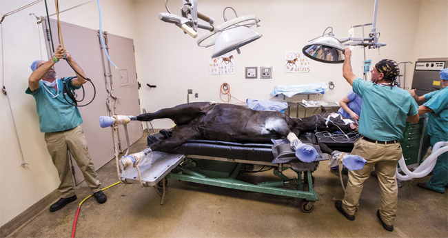 التثبيت الداخلي يتضمن جمع أجزاء العظم معا بصفائح ولوالب، توضع طوليا إما داخل العظم أو خارجه, وفي بعض الحالات يزال اللولب عند التعافي, وفي حالات أخرى تبقى اللوالب والصفائح للأبد، ولهذا الإجراء فوائد عديدة؛ حيث يتعافى الكسر بسرعة، وفيه يتم تقليص قساوة العظم, بالإضافة إلى تفادي تأذي الجبيرة أو انزلاقها، كما يكون الحصان قادرا على حمل الأوزان على قدمه المكسورة والتي تم تثبيتها بجبيرة خارجية. وإذا لم يستطع الحصان العودة الى نفس عمله, فمن الممكن امتطاؤه, أو استخدامه لأغراض الاستيلاد.