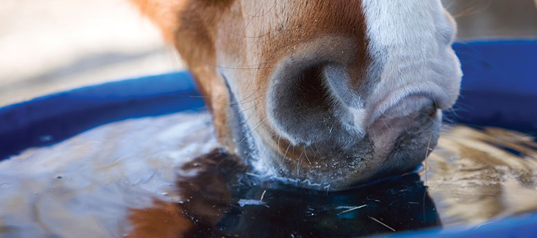 وفيما يخص علاج الجفاف؛ فإنه من المهم معالجته بالسرعة الممكنة، من قبل الطبيب البيطري. وللوقاية منه؛ يجب تشجيع الخيل على الشرب بانتظام أثناء المنافسات. كما يتم إعطاءها انواعا من المحاليل المساعدة، ويجب أخذ الحذر في التعامل مع هذه المحاليل، لأنه في حال كان تركيزها قويا ستتسبب بنتائج عكسية. وفي حالات الجفاف الحادة يعطي البيطري سوائل وريدية.