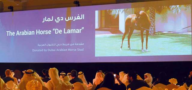 كما عرض المزاد فرساً عربية أصيلة «دي لمار»، مقدمة من مربط دبي للخيول العربية، وبيعت بمبلغ 260 ألف درهم، إذ تعتبر من أجود السلالات العربية الأصيلة.