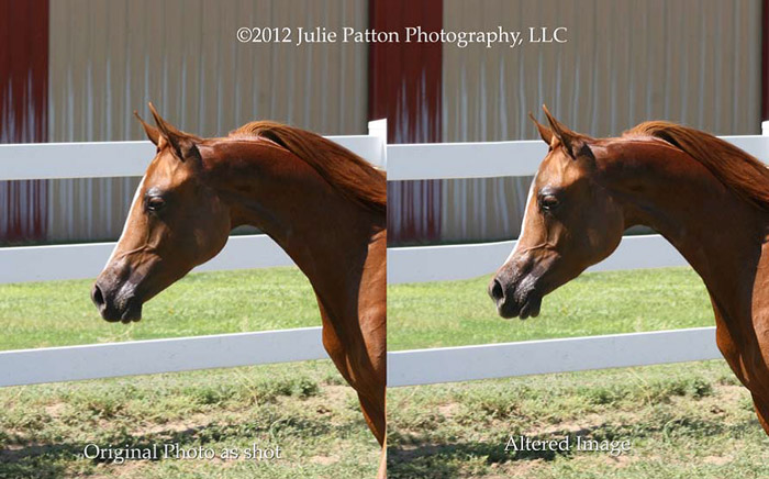 وأعتقد أنه من أمر صعب أيضاً على أصحاب الخيول الذين يريدون تصوير خيولهم. فإذا تعودت على الشكل المبالغ فيه، الغير موجود إلا فقط على شبكة الانترنت فمن الصعب جداً معرفة ما إذا كان المصور قد غير شكل حصانك، فإنك تريد أن يكون حصانك جميلاً جداً وأعتقد أن كثيراً من أصحاب الخيول يعتقدون فى صور تم التلاعب بها أنها مجرد زاوية جيده. ولا تعجبهم الصور من دون هذا التغيير الذي يغير الحقيقية. وكنت أعتقد أن صور العروض هي السبيل والبرهان الأكثر ضماناً للمقارنة الحقيقية، ولكنى في الآونة الأخيرة رأيت صوراً لخيول العروض تم التلاعب بها فى المجلات أيضاً.