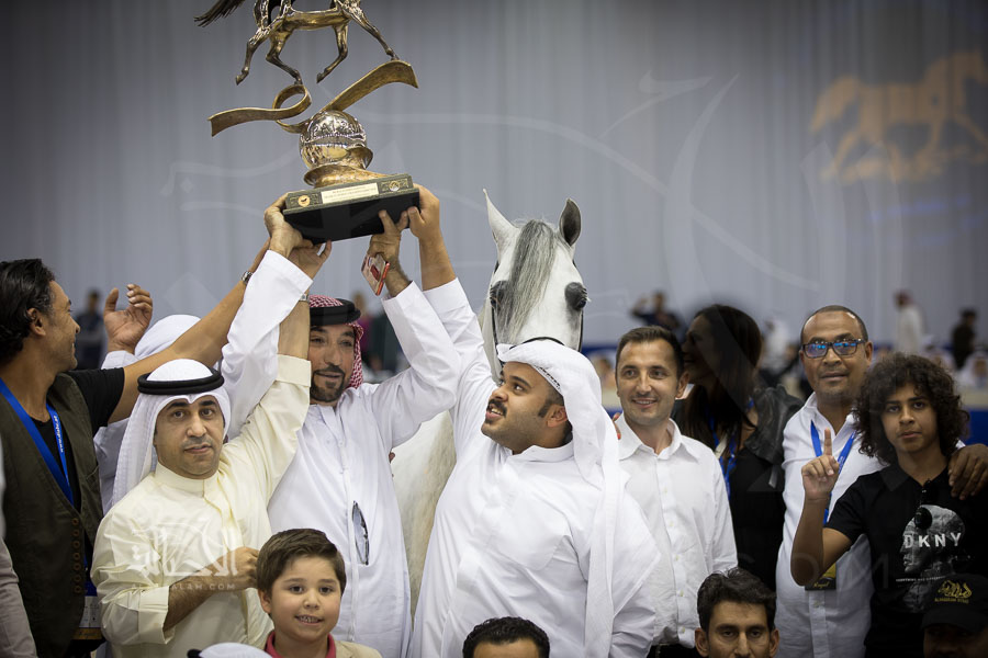 ابهر الحضور الفحل المميز (إي اس حرير) ابن الفحل (ع ج دينار) ومن الأم (تي اف ماقنومس ماجيك) والمملوك لمربط الصقران للخيل العربية الأصيلة بمشاركته في بطولة دبي الدولية للجواد العربي ٢٠١٨ ، والتي اختتمت فعالياتها مساء امس السبت 17 مارس 2018 بمركز دبي الدولي التجاري العالمي بنسختها الـ15 ؛ بعد إعلان النتيجة النهائية لمنافسات الأفحل بتحقيق الفحل (حرير) اللقب الذهبي بإجماع الحكام الـ ١٠ ليختال ويرفع اسم مربط الصقران عالياً في سماء دبي.