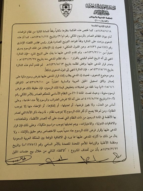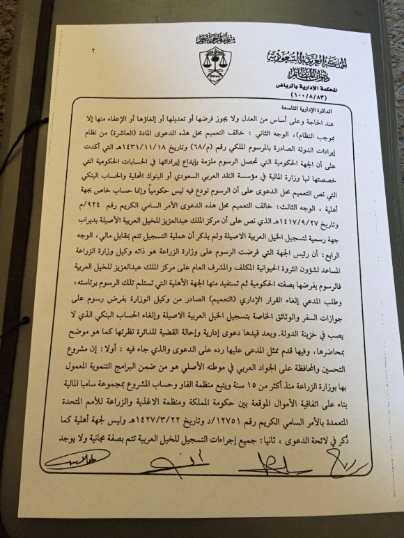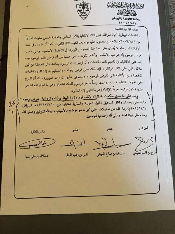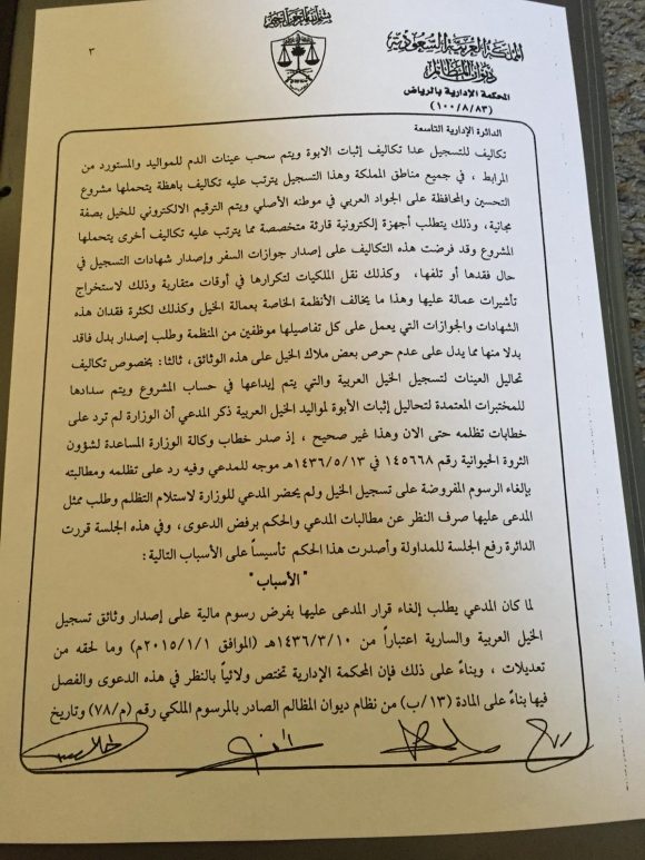 «السناح» يكسب قضية ضد مركز الملك عبدالعزيز لتلغى الرسوم المالية على خدمات تسجيل الخيول العربية