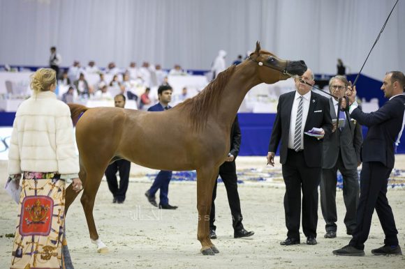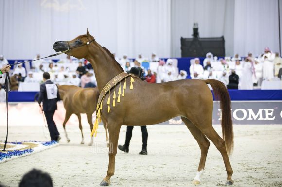 انتزعت المهرة فيجين ام اي (الغيانسي x الوايس فالنتين ام آي) لمربط البداير العائد للشيخ محمد بن سعود القاسمي رئيس دائرة المالية المركزية بحكومة الشارقة، ذهبية المهرات خلال ختام بطولة دبي الدولية للجواد العربية 2019.