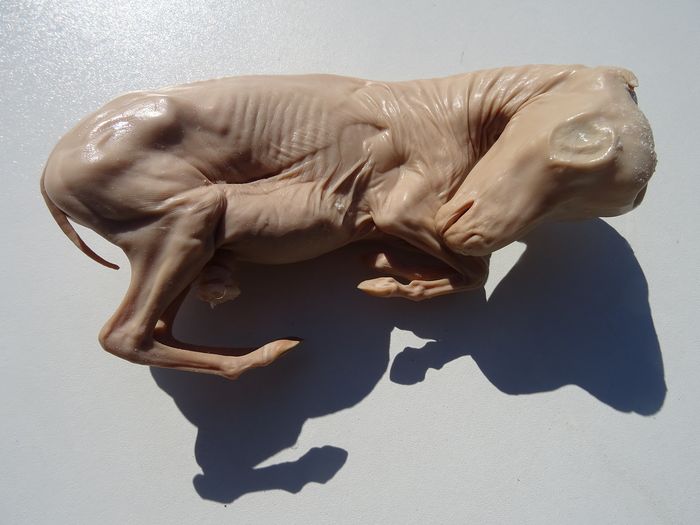 اما الفحص العيني للأجنة المجهضة قبل الشهر السادس تكون في تحلل شديد، والمجهضة بعد الشهر السادس تكون صفراء وهناك أنزفة دبوسية على الأغشية المخاطية، وبؤر مواتية بيضاء أو بلون الكريمة في الكبد، مع تجمع سوائل في التجويف البلوري.