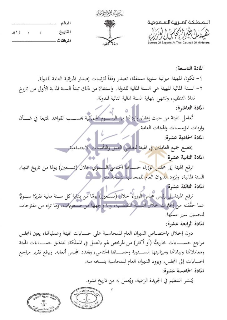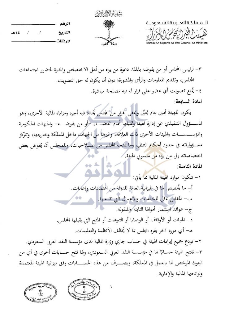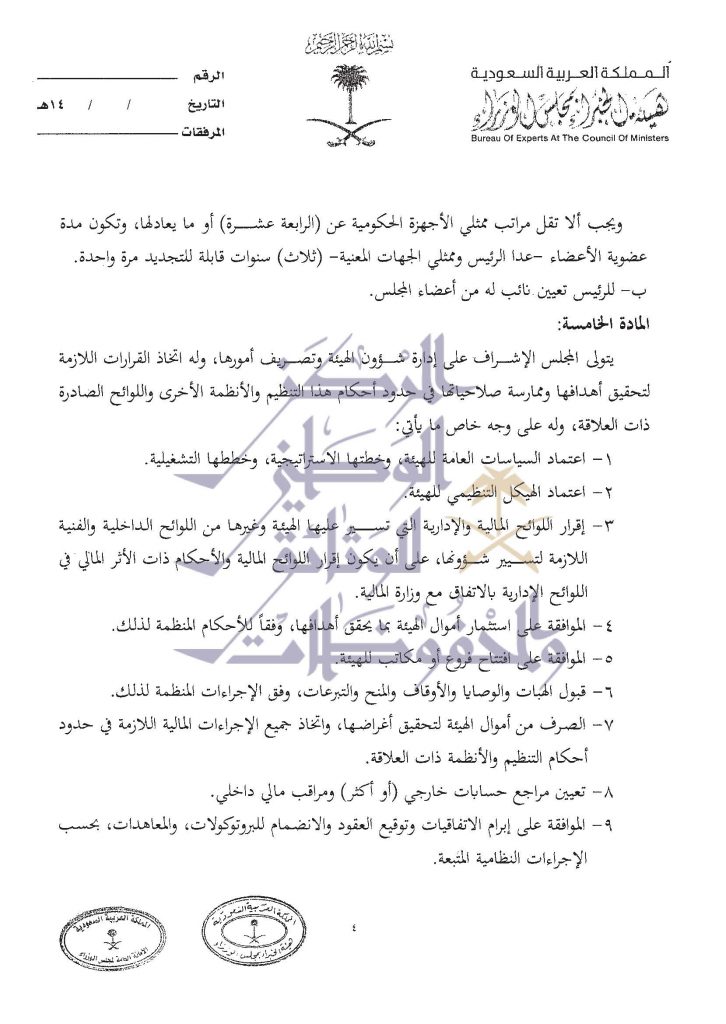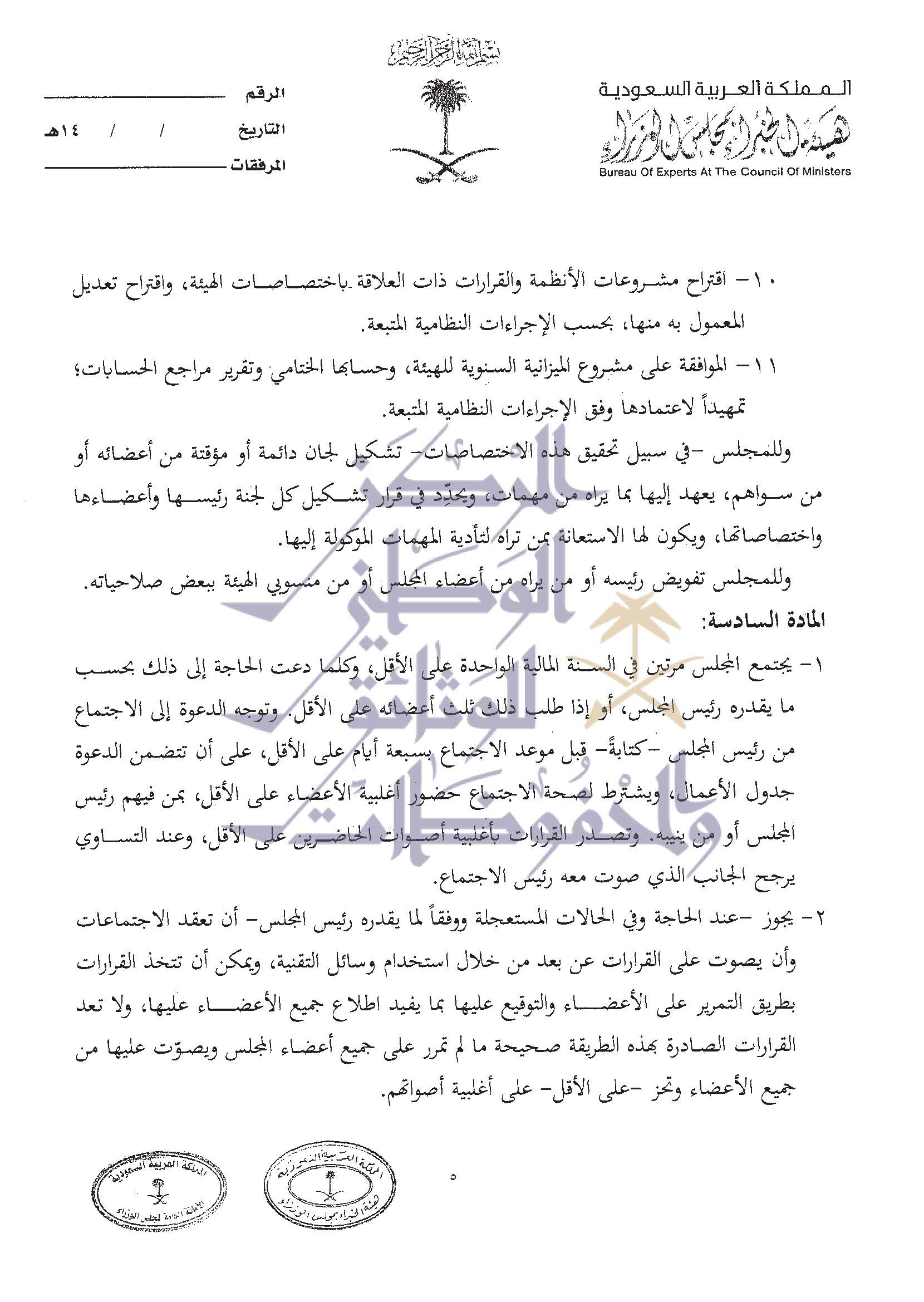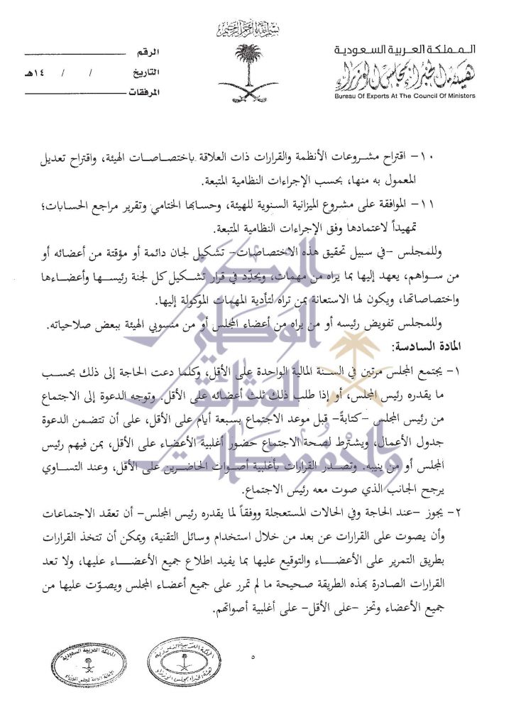 صيغة عمل الهئية العليا للفروسية التي وافق عليها مجلس الوزراء في الجلسة الماضية
