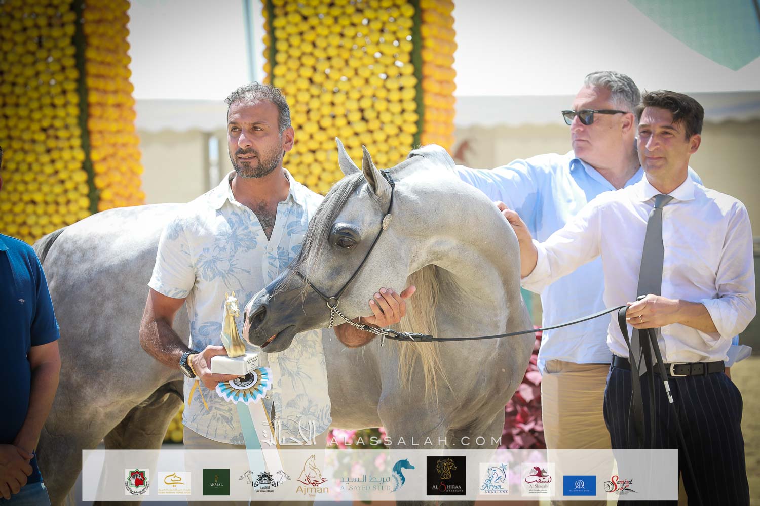 وجاءت الرباعية عبر كل من دي شيماز (اف ايه الرشيم x ليدي فيرونيكا) الذي توج بذهب الأمهار، ونال الفحل المتألق دي سراج (اف ايه الرشيم x ليدي فيرونيكا)، فضية الفحول، فيما حصد ابنه دي شرار (دي سراج x اف تي شيلا)، فضية الأمهار عمر سنة، وأكملت الرباعية دي جودي (ع ج عزام xايلي فلامينكا)، التي نالت برونزية المهرات.