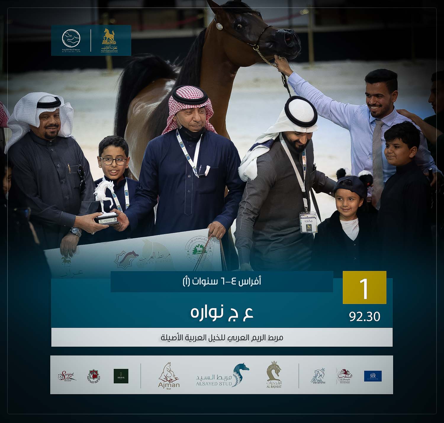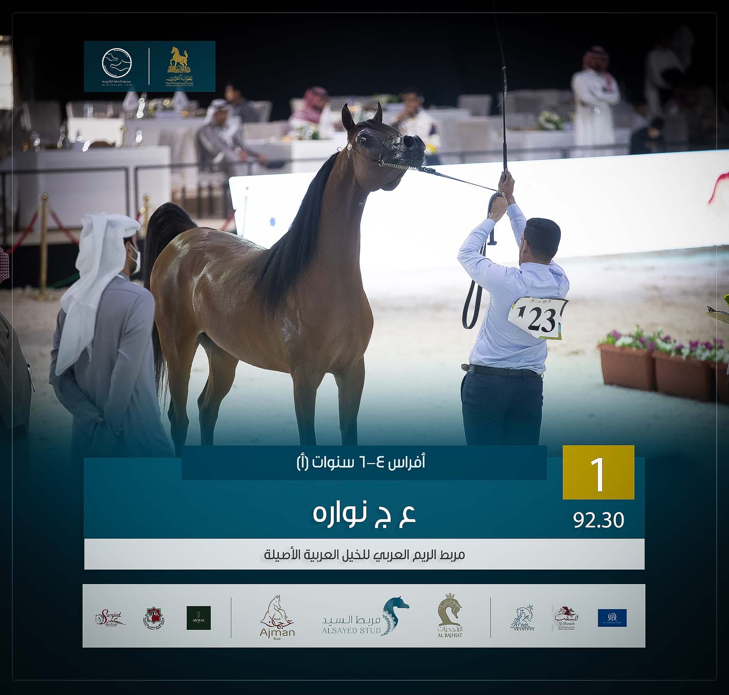 المركز الأول: ع ج نواره (ايه اف الرشيم x ناستيه او اس) مربط الريم- السعودية.