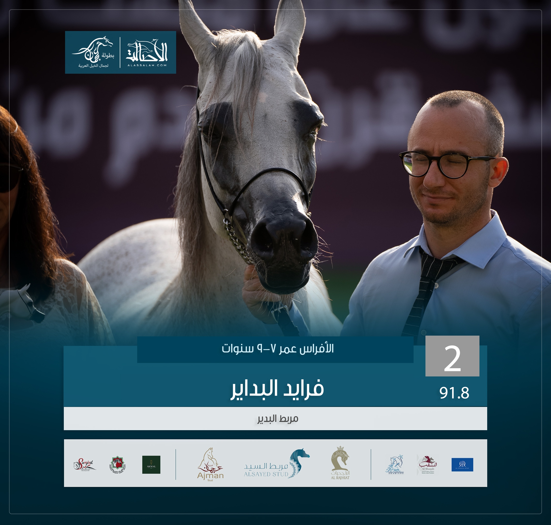 المركز الثاني: فرايد البداير ( مراج * فير فيرا بلنكا) الشيخ محمد بن سعود القاسمي. الدرجة:91.80