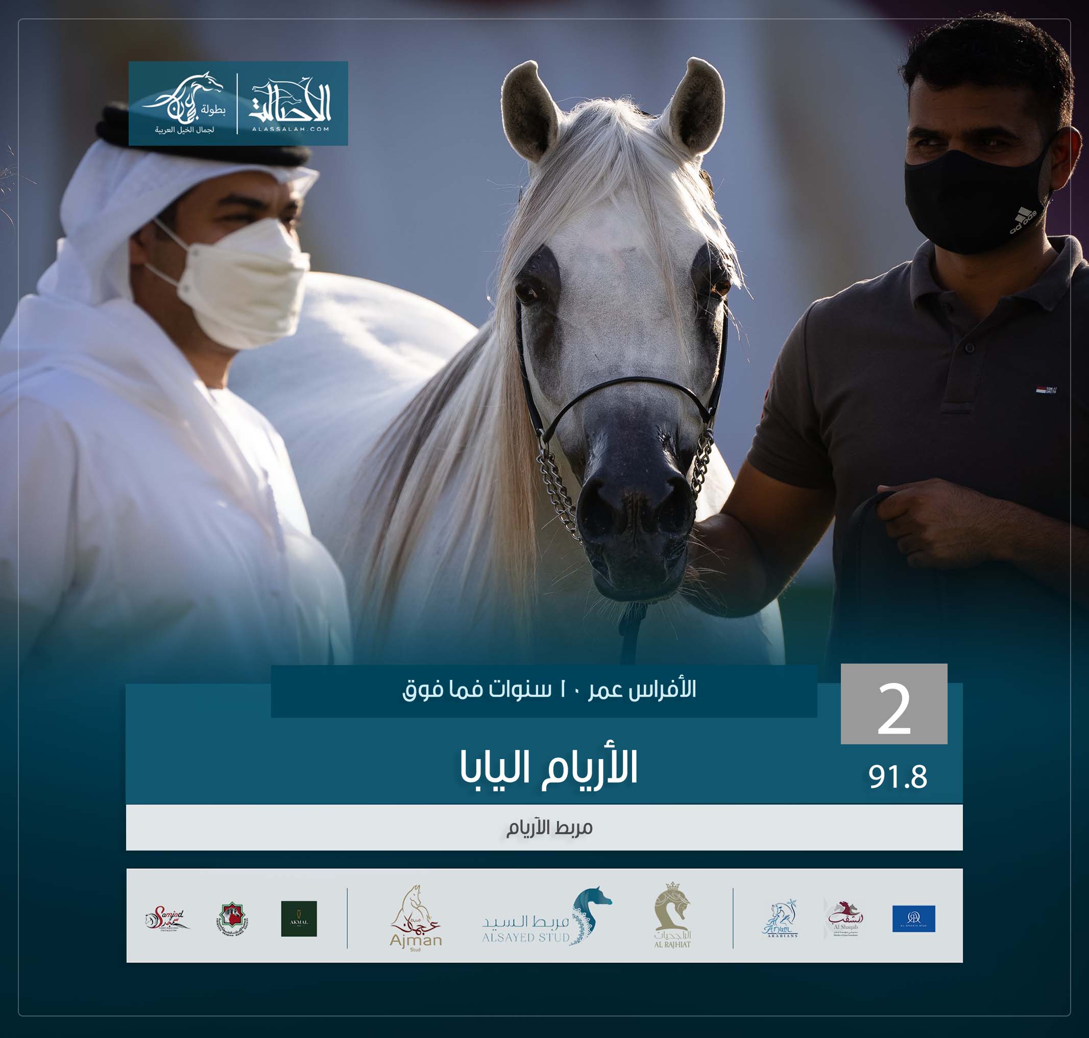 المركز الثاني: الأريام اليابا ( روجر ام دبليو * كبيشا) إسطبلات الأريام الدرجة:91.80