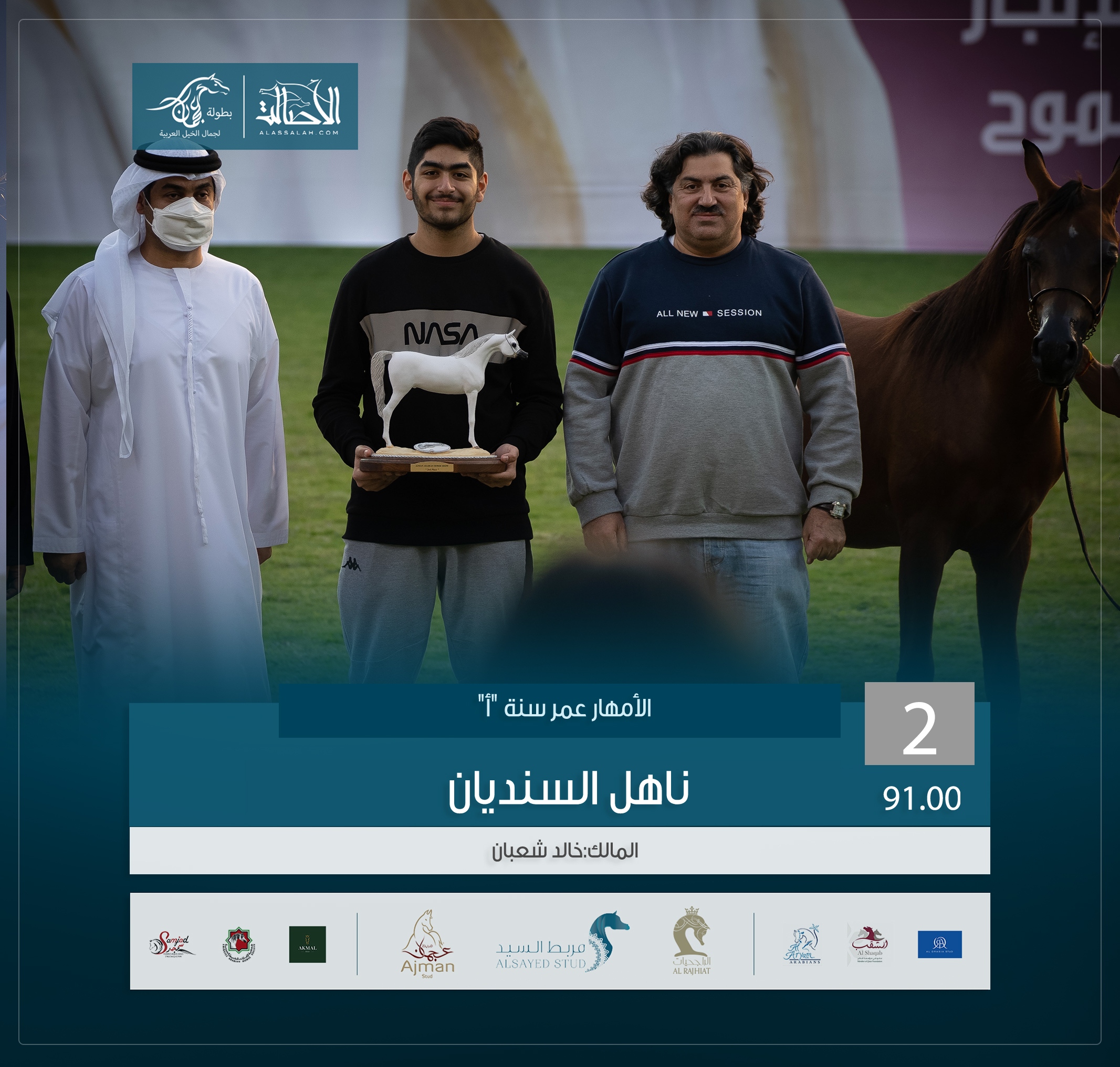 المركز الثاني: ناهل السنديان (ع ج ناهل x ع ج سليمة) مربط خالد شعبان الدرجة:91.00