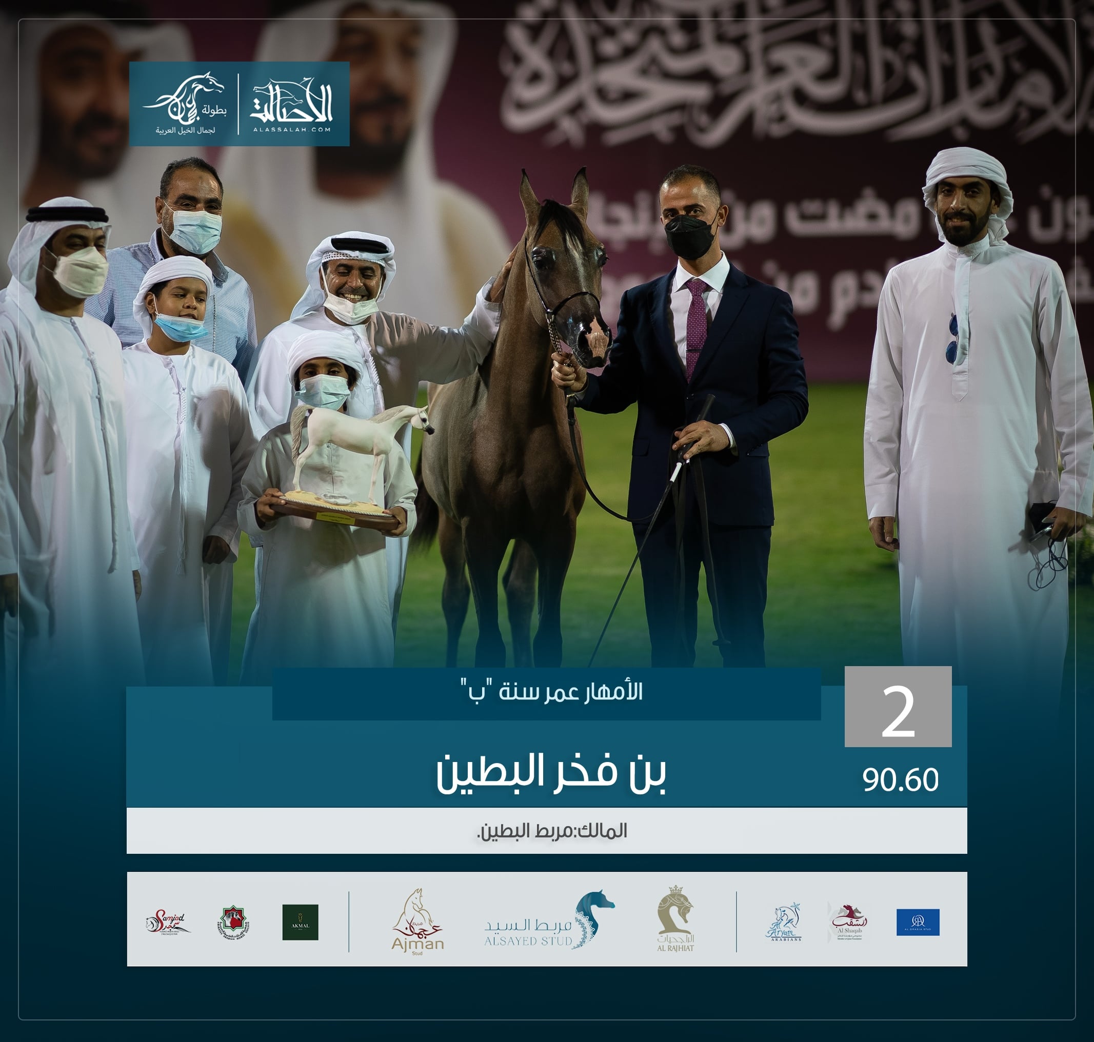 المركز الثاني: بن فخر البطين (فخر البطين x كريمة العالية) مربط البطين. الدرجة:90.60
