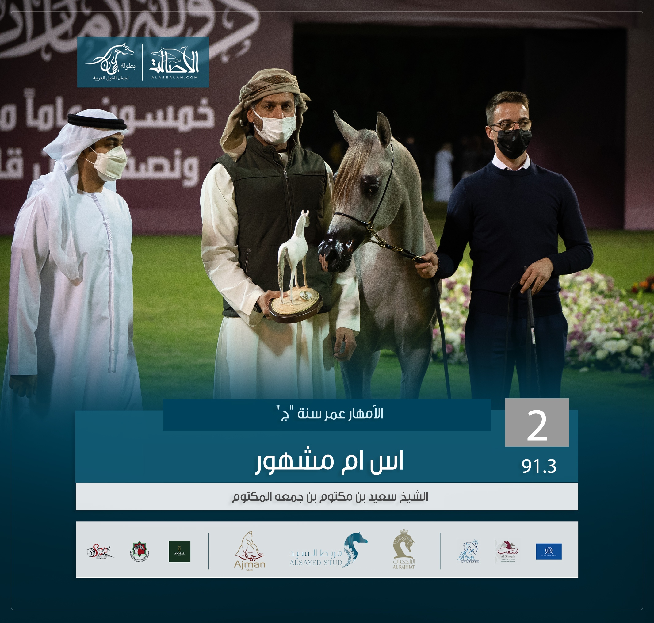 المركز الثاني: اس ام مشهور ( دي سراج * دي مزنة) مربط الشيخ سعيد بن مكتوم بن جمعة آل مكتوم. الدرجة:91.30