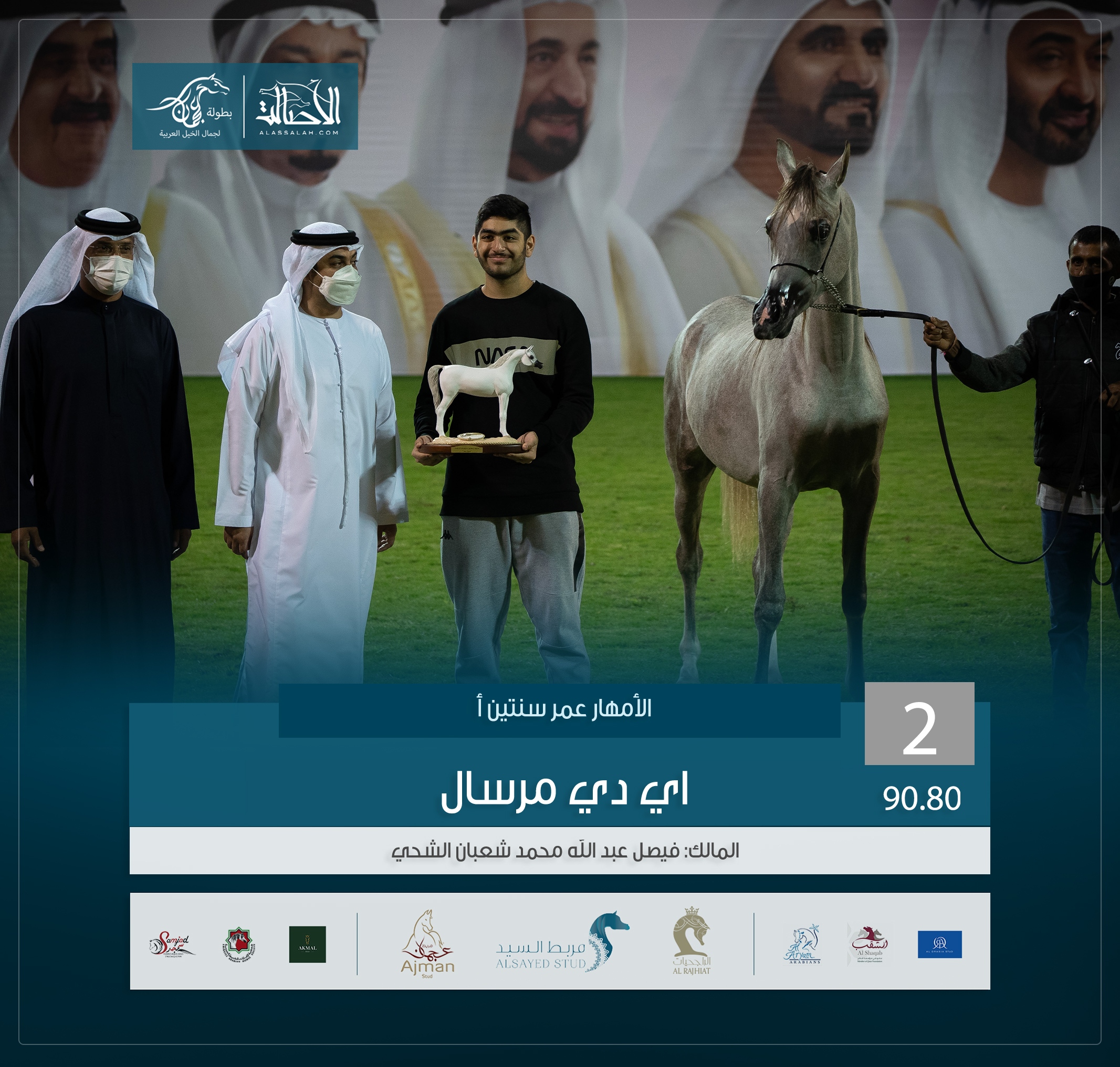 المركز الثاني: اي دي مرسال ( إي اس حرير * اس كيو انيسة) مربط فيصل عبد الله محمد شعبان الشحي. الدرجة:90.80