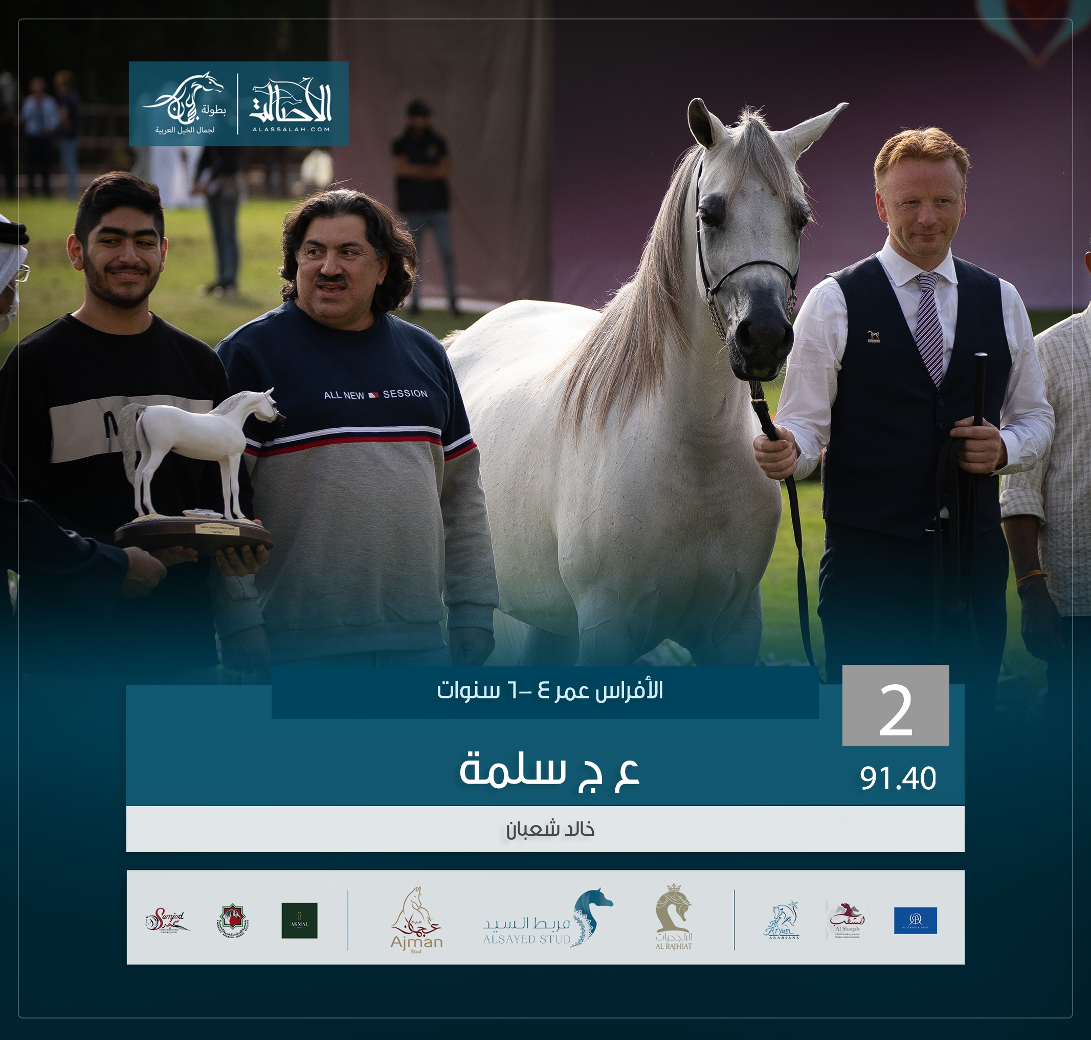 المركز الثاني: ع ج سلمة (نوفل ان كي x ع ج سفيرة) مربط خالد شعبان.الدرجة:91.40