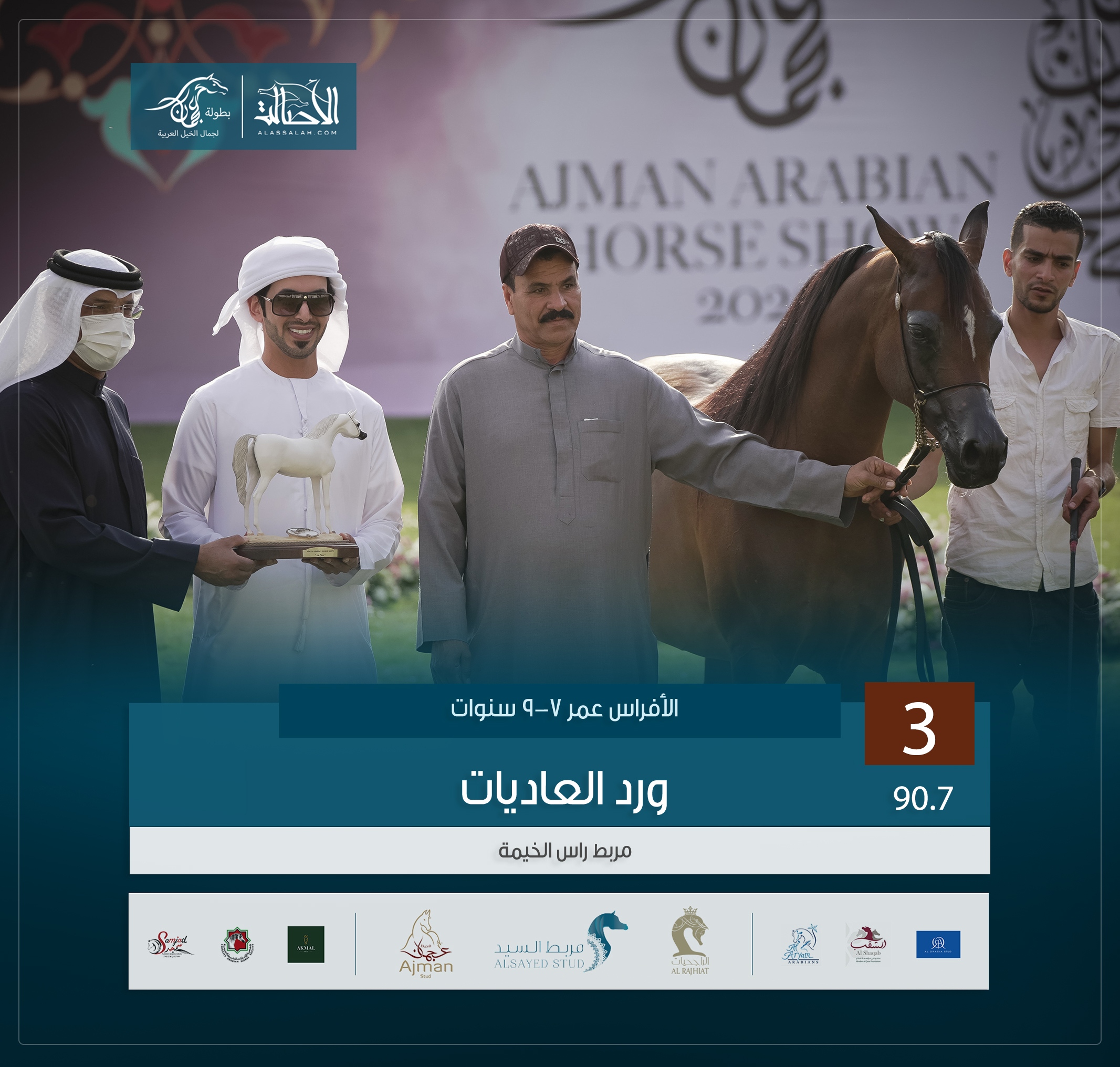 المركز الثالث: ورد العاديات (مراج * دي حسنة) مربط رأس الخيمة. الدرجة:90.70