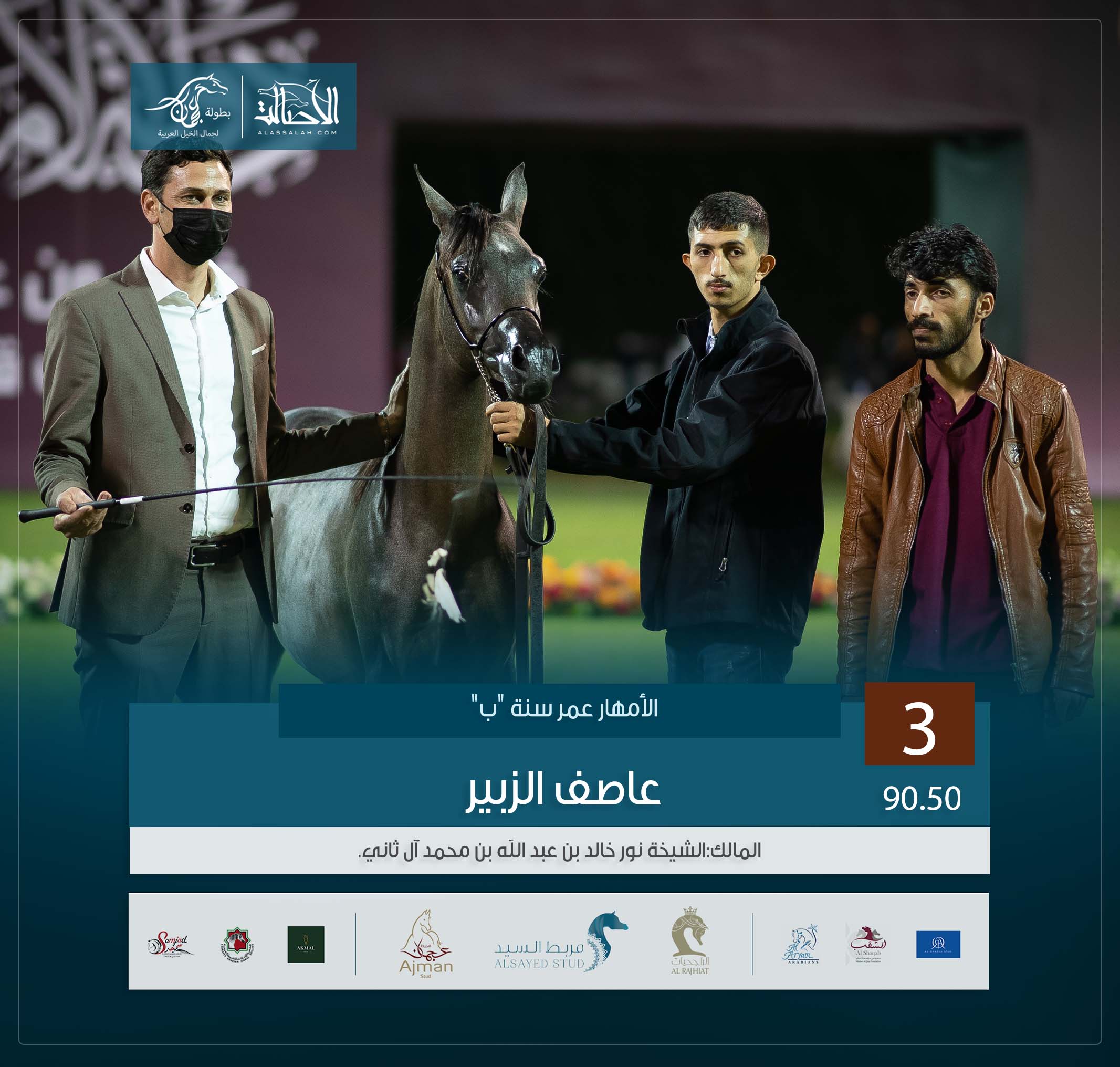 المركز الثالث: عاصف الزبير (اس ام اي ماجيك وان x كمونة الزبير) مربط الشيخة نور خالد بن عبد الله بن محمد آل ثاني. الدرجة:90.50