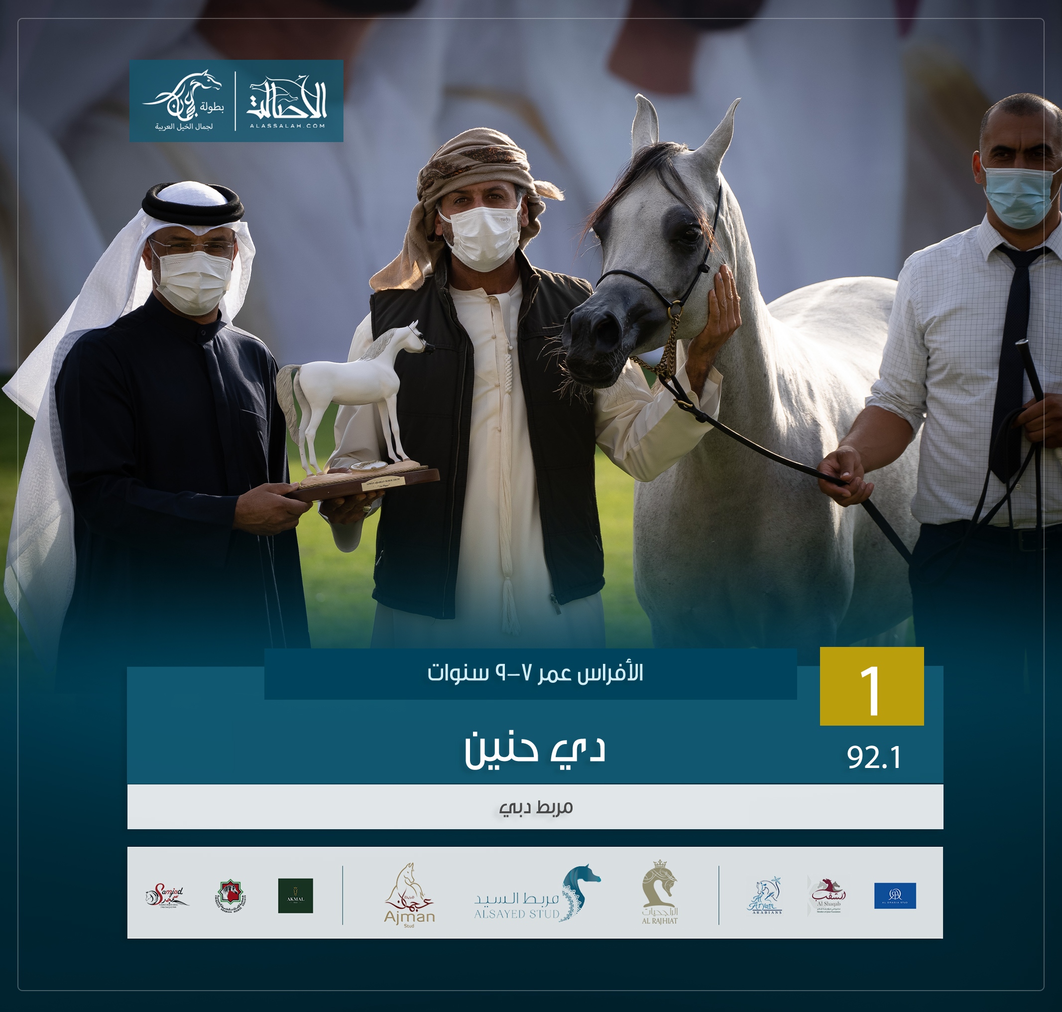 المركز الأول: دي حنين ( اف ايه الرشيم * فير فيرا بلنكا ) مربط دبي.الدرجة:92.10