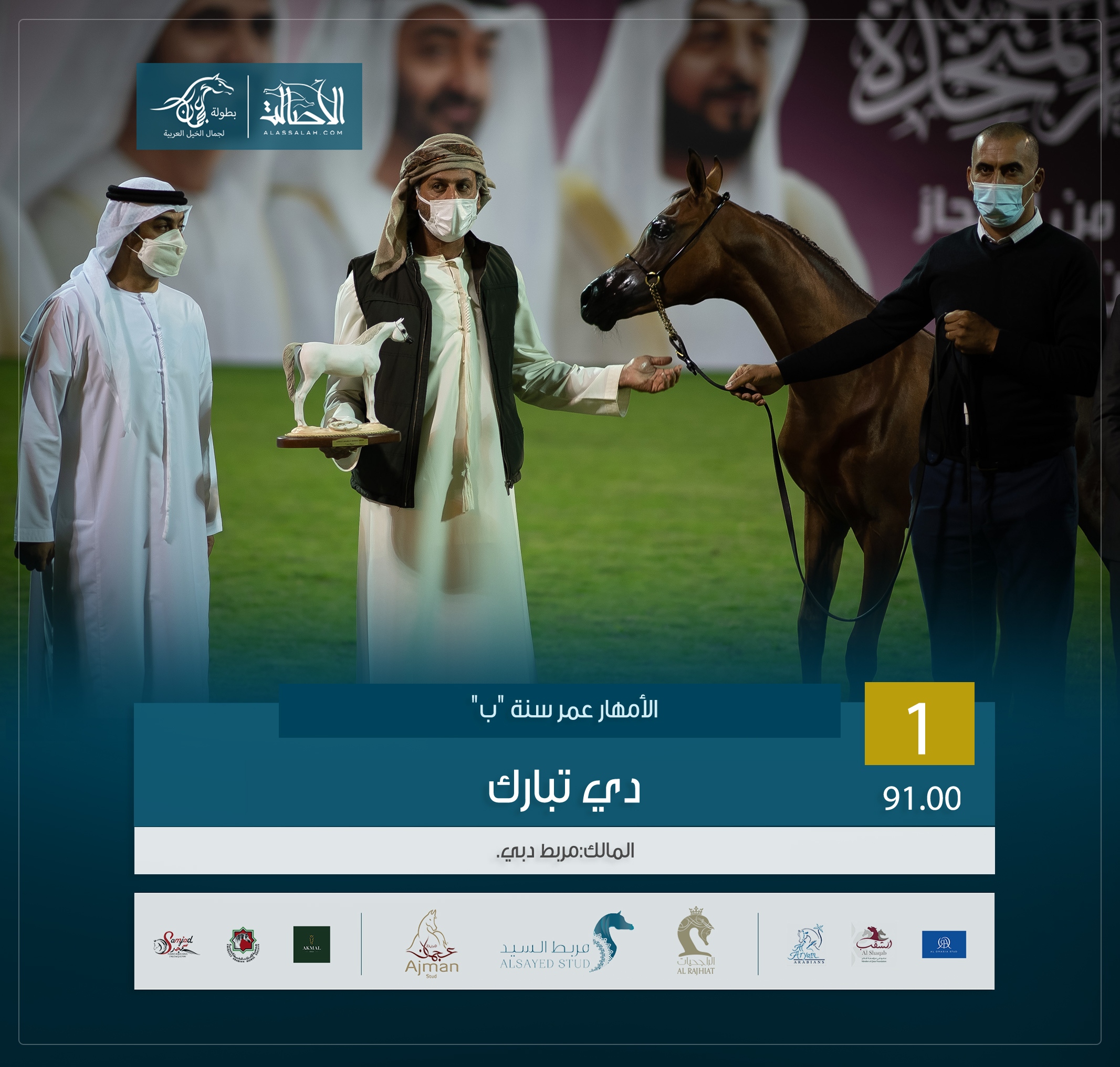 المركز الأول: دي تبارك (اف ايه الرشيم x دي يمامة) مربط دبي. الدرجة:91.00
