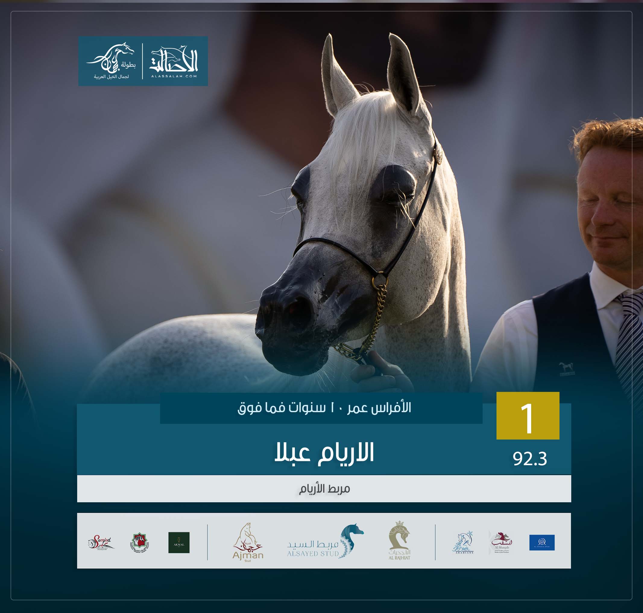 المركز الأول: الأريام عشاق (دي سراج x الأريام أبلا) إسطبلات الأريام. الدرجة:91.80
