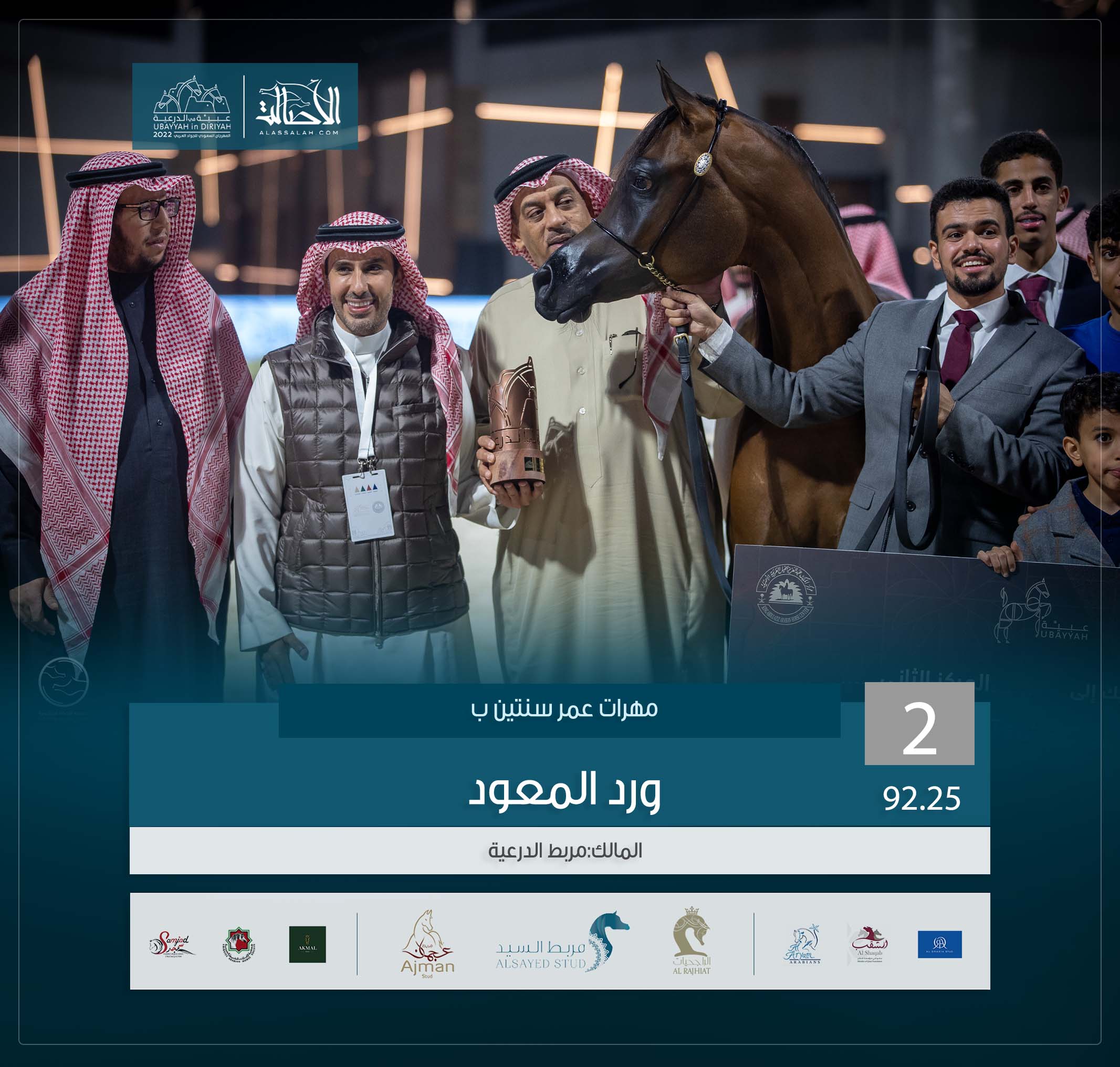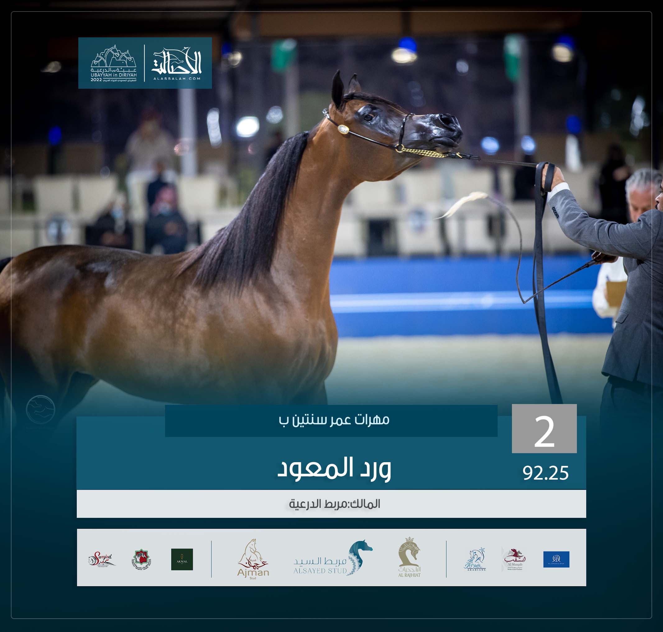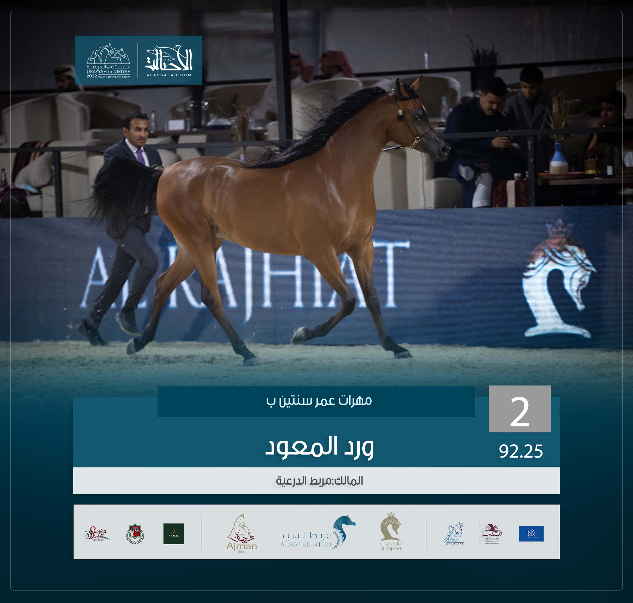 المركز الثاني: ورد المعود (اس ام اي ماجيك وان x سندريلا المعود) مربط الدرعية.